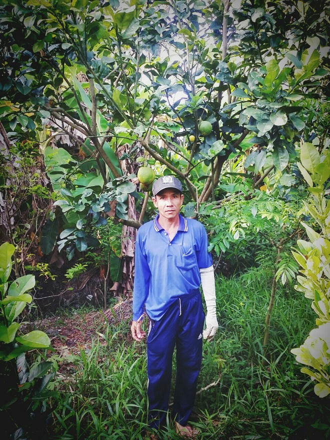 Anh Lắm là hộ bị thu hồi diện tích đất lớn nhất 5.172m2 . Nhiều năm qua, mảnh đất của anh được đầu tư tiền của, công sức để san lấp và hiện trồng nhiều loại cây ăn trái như dừa, xoài, cóc thái, bưởi…đang cho năng suất cao.