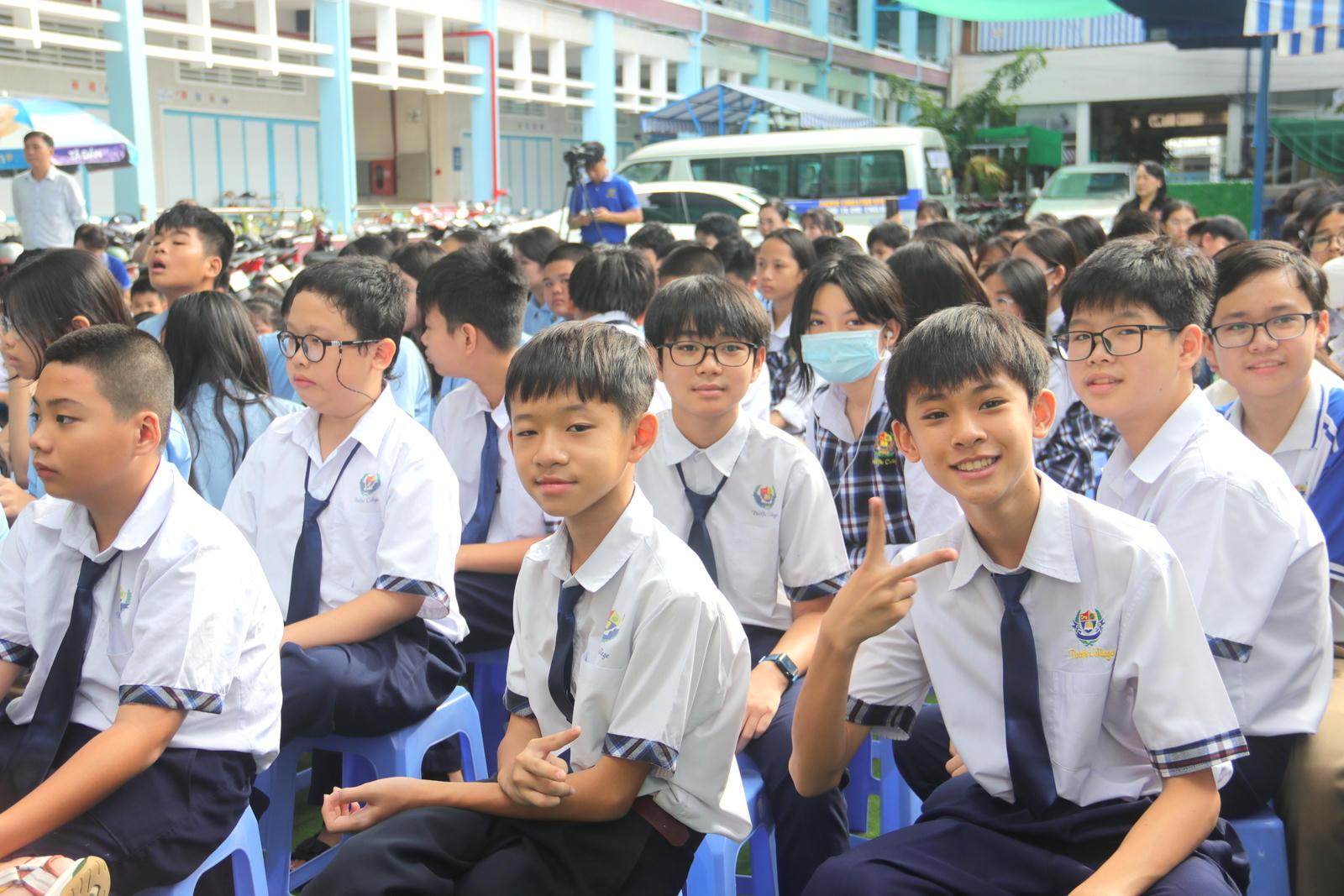Các em học sinh thích thú và phấn khởi khi tham gia chương trình |