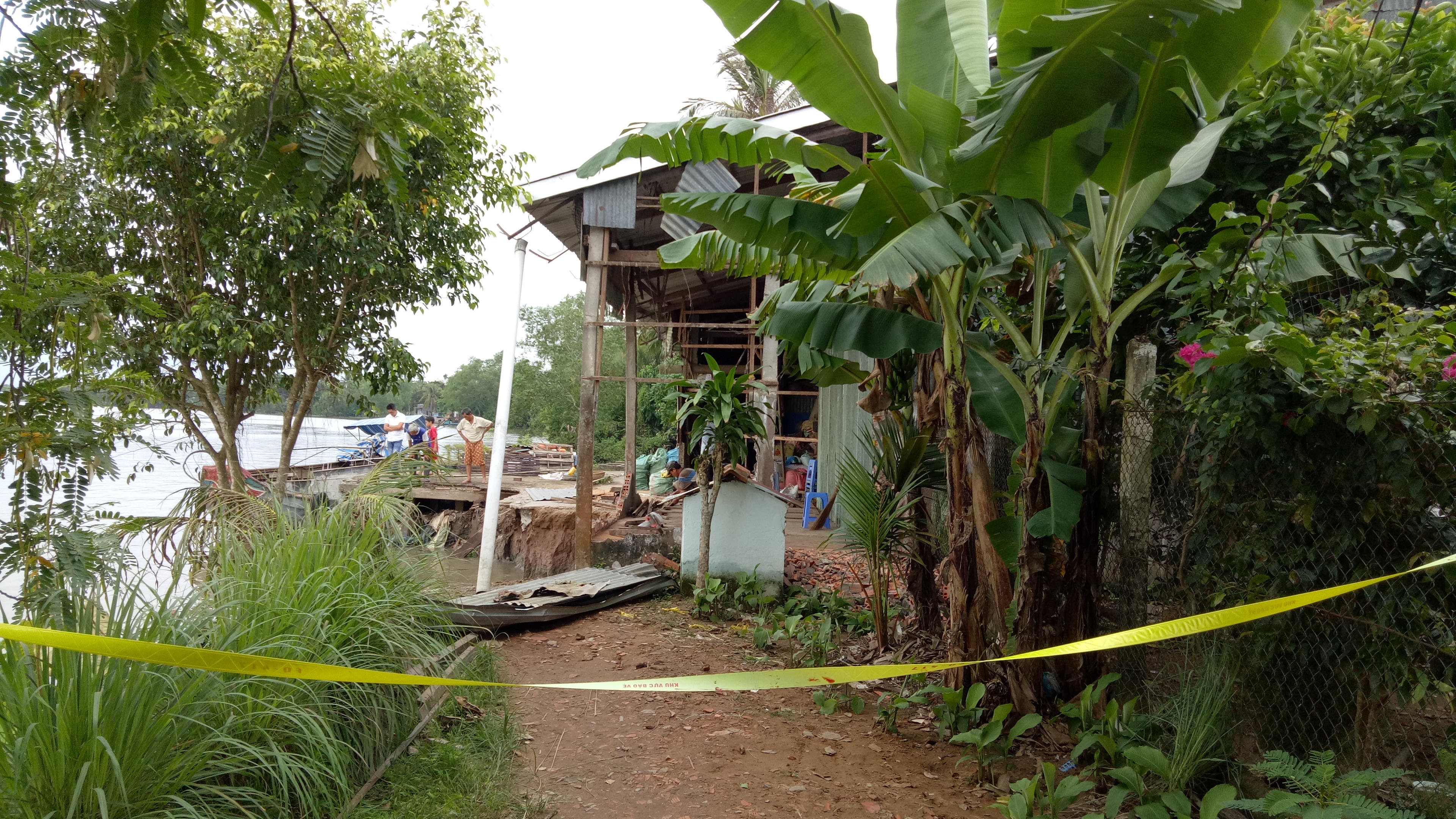 Ông Trần Hoàng Nam cho biết: “Tôi rất hoảng hốt khi bất ngờ nghe một tiếng ầm làm cái nhà của tôi rơi xuống sông. Tất cả vật dụng, đồ dùng trong nhà cùng với dàn cẩu gạo đều rơi mất hút dưới nước”.