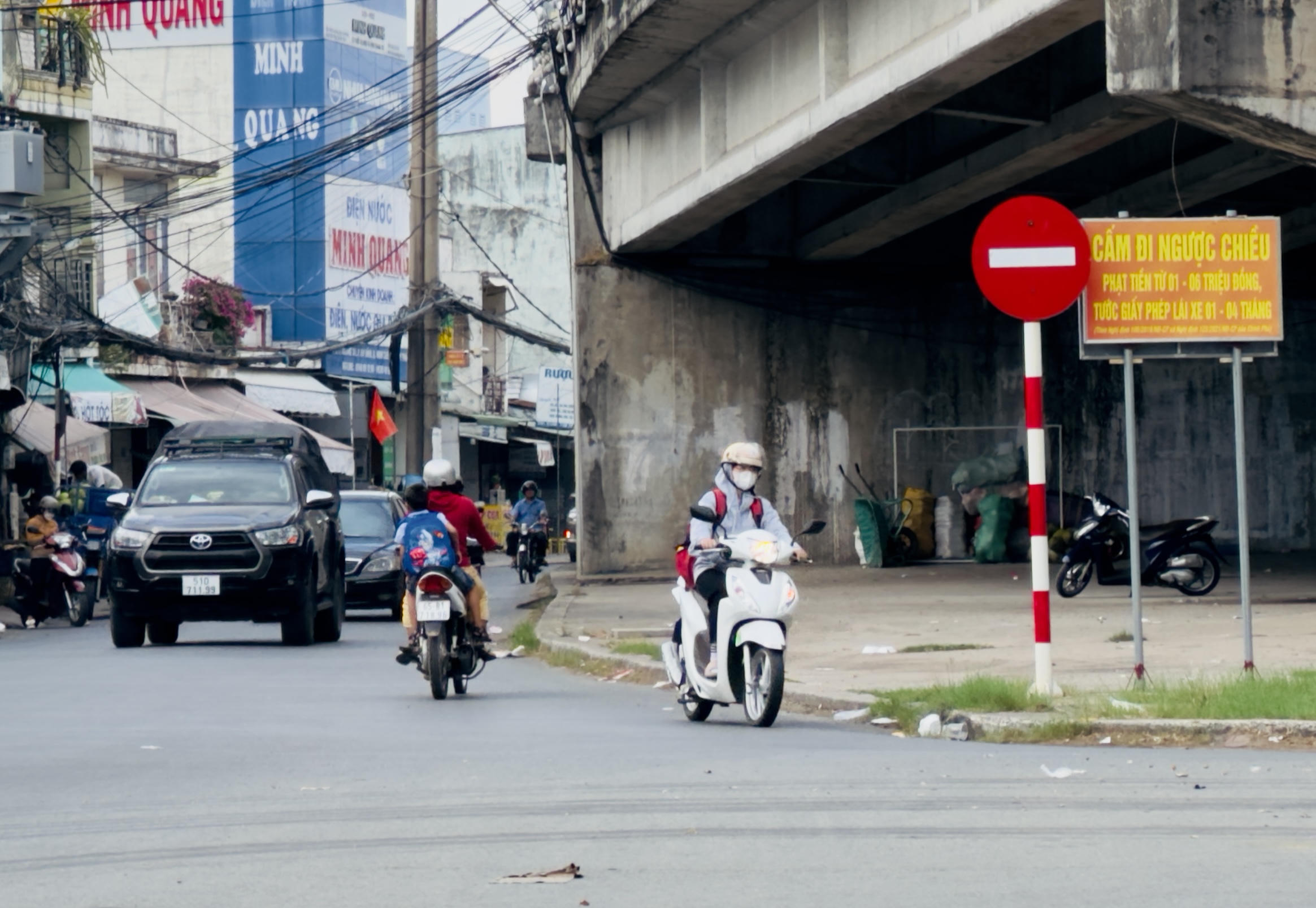 Bỏ qua biển báo giao thông, người dân ngang nhiên điều khiển phương tiện đi vào đường cấm. |