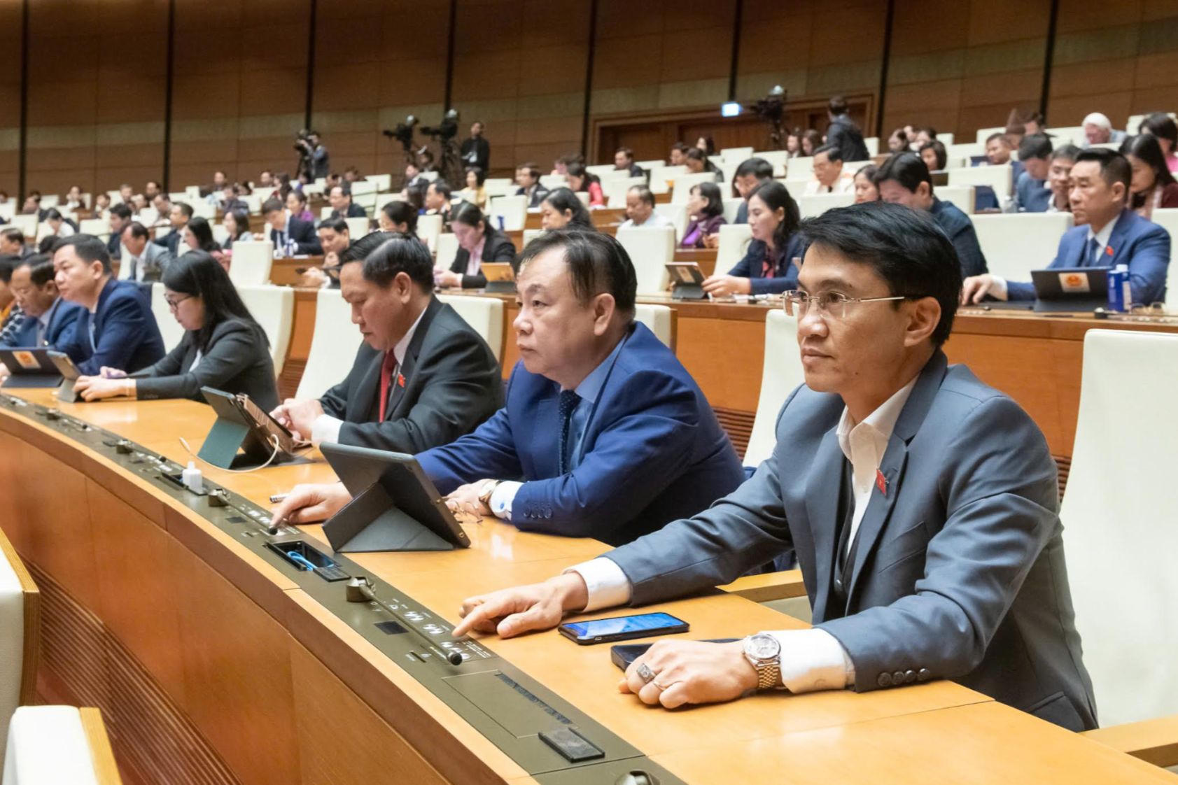 Các đại biểu Quốc hội bấm nút thông qua một dự án luật. (Ảnh: quochoi.vn) |