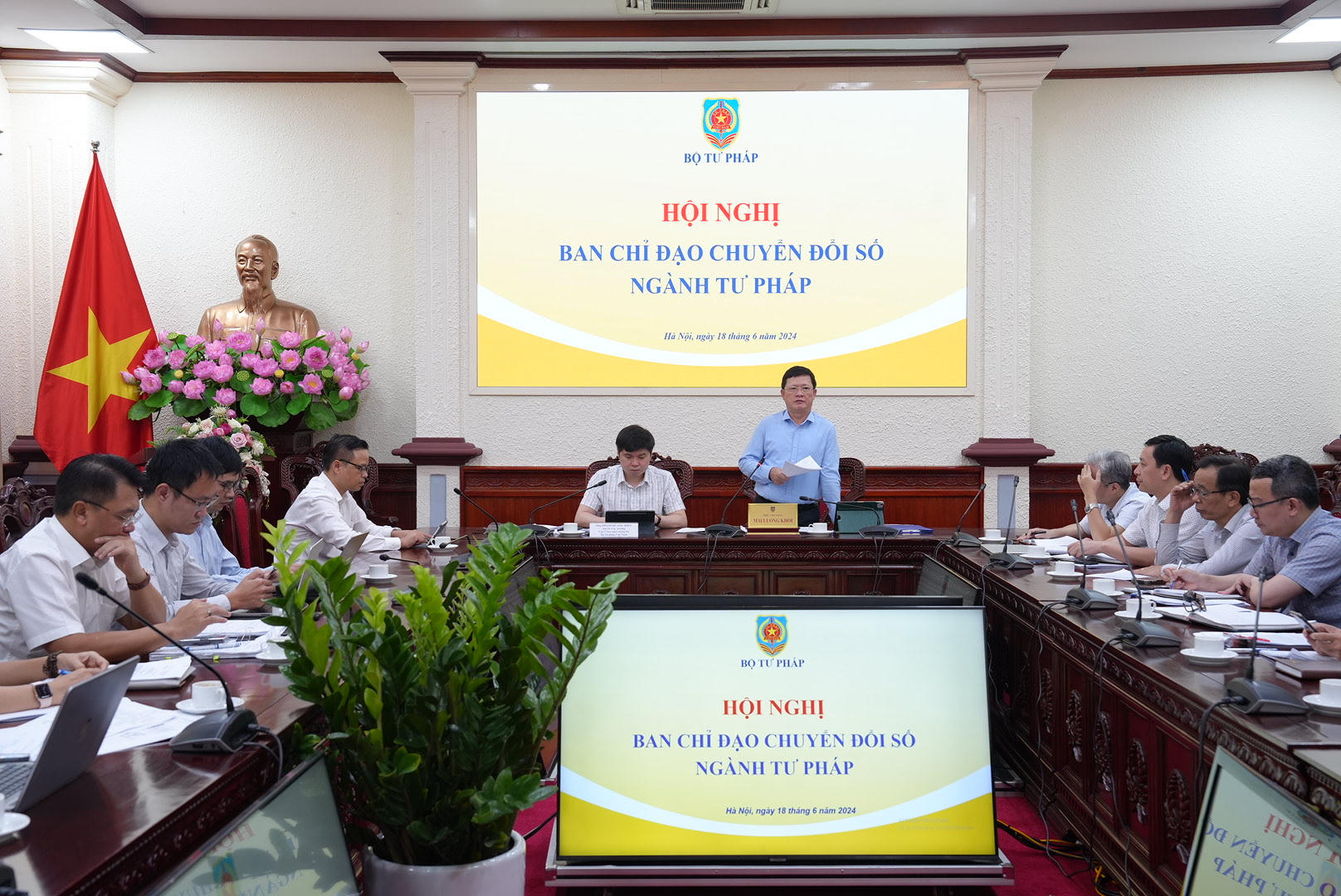 (PLVN) -Sáng 18/6, Thứ trưởng Bộ Tư pháp Mai Lương Khôi, Phó trưởng Ban thường trực Ban Chỉ đạo Chuyển đổi số Ngành Tư pháp chủ trì Hội nghị Ban Chỉ đạo chuyển đổi số ngành tư pháp.