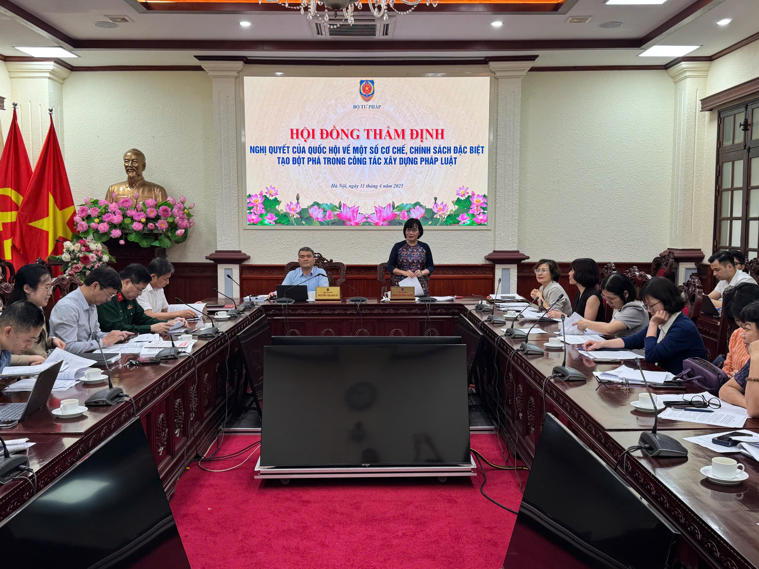 Kết luận buổi thẩm định, Thứ trưởng Đặng Hoàng Oanh nhấn mạnh, công tác xây dựng pháp luật là một nhiệm vụ quan trọng, đòi hỏi trình độ chuyên môn và bản lĩnh chính trị cao. Công tác này trong bối cảnh hiện nay càng trở nên phức tạp, đòi hỏi nhiều nỗ lực và nguồn lực. Để đáp ứng yêu cầu cải cách và phát triển, cần có những cơ chế, chính sách đặc thù cho công tác xây dựng pháp luật.