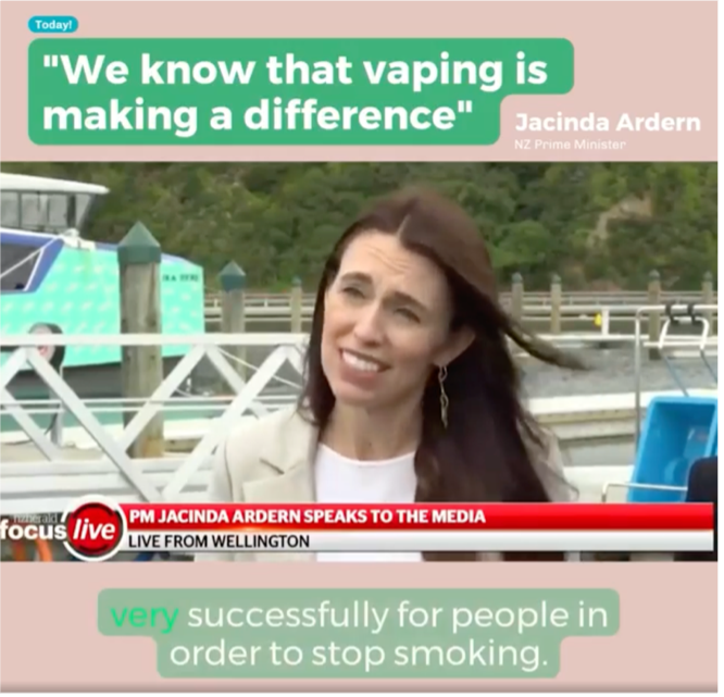 Tháng 9/2021, bà Jacinda Ardern, khi đang giữ cương vị Thủ tướng New Zealand nhận định, việc tiếp tục tăng giá thuốc lá điếu không khiến mọi người ngừng hút thuốc ngay. Vì vậy, nên cân nhắc tìm sản phẩm thay thế, trong đó TLĐT được nhiều người sử dụng như công cụ hỗ trợ để cai thuốc.