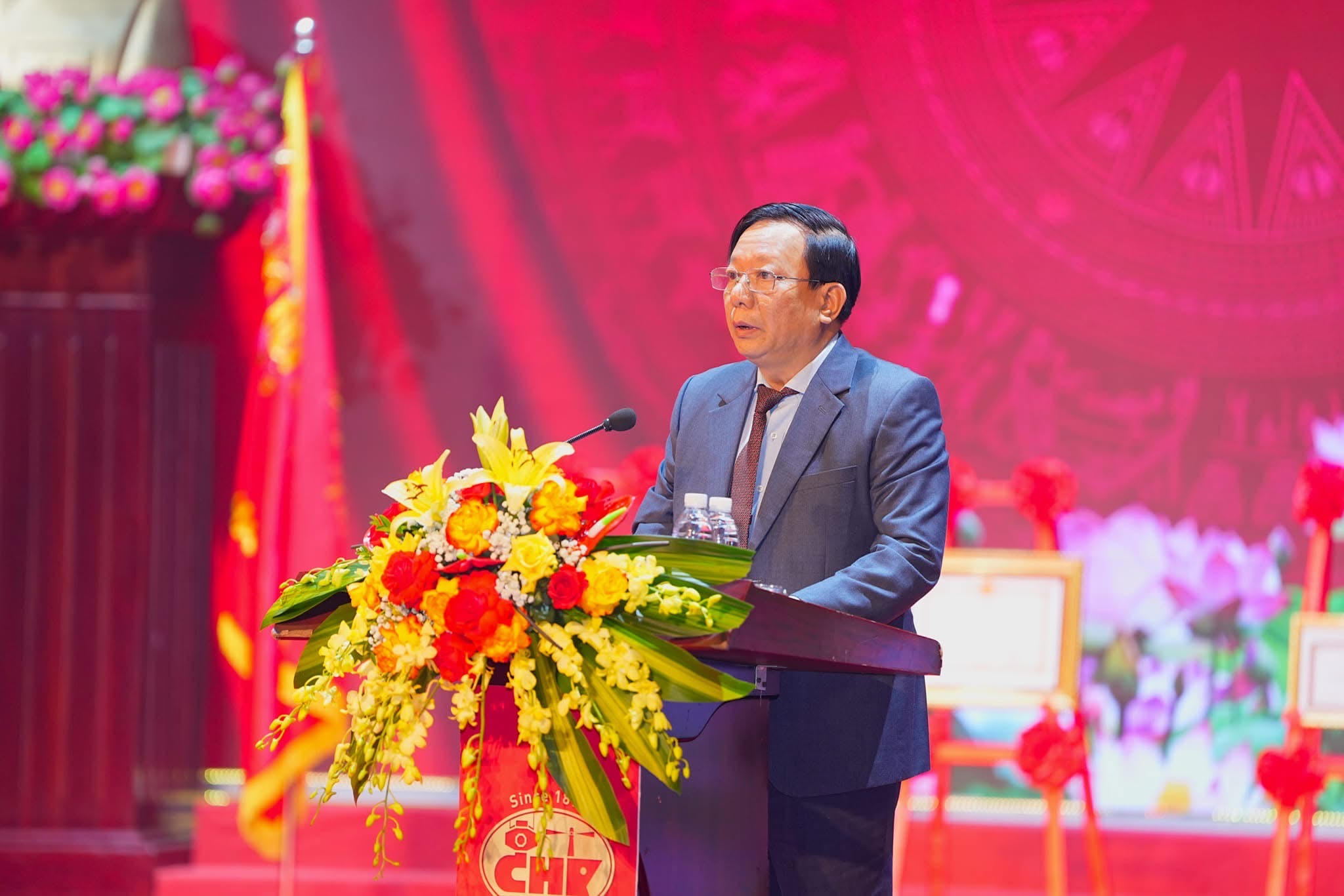 | Bí thư Đảng ủy, Chủ tịch HĐQT Công ty CP Cảng Hải Phòng Phạm Hồng Minh trình bày diễn văn kỷ niệm. |
