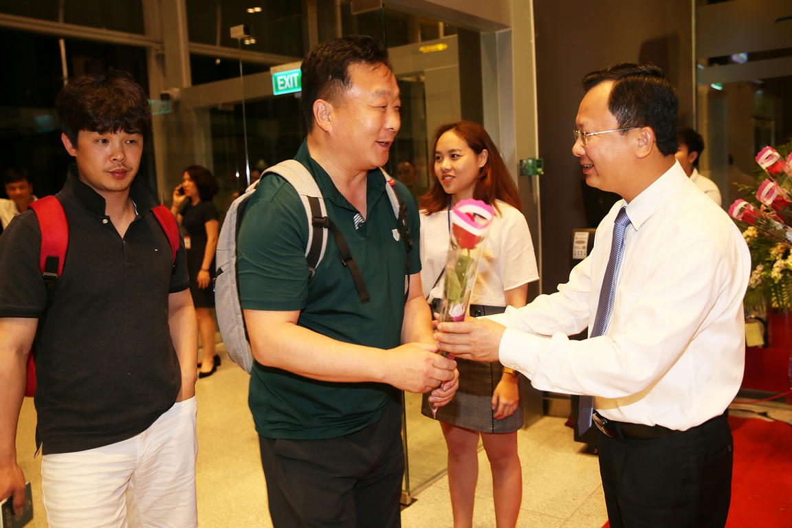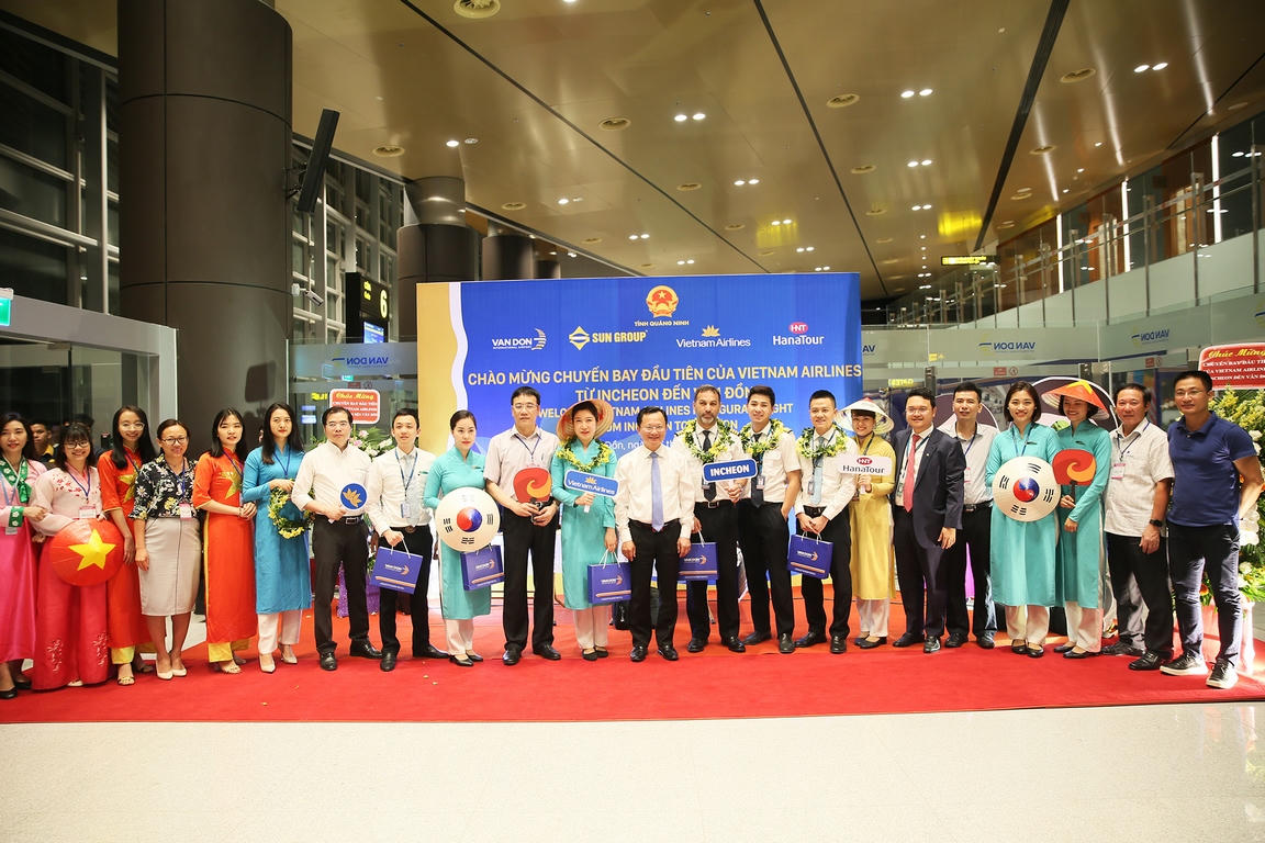Máy bay A321 của VNA đưa 180 hành khách khởi hành từ Incheon lúc 23h45 ngày 5/6 và đáp xuống Vân Đồn lúc 1h45 ngày 6/6/2019. Ông Cao Tường Huy, Phó Chủ tịch UBND tỉnh Quảng Ninh cùng đại diện các sở ban ngành trên địa bàn tỉnh và đại diện sân bay Vân Đồn, đại diện hãng hàng không quốc gia Vietnam Airlines đã tổ chức nghi thức phun vòi rồng chào đón máy bay và tặng hoa hành khách, phi hành đoàn.