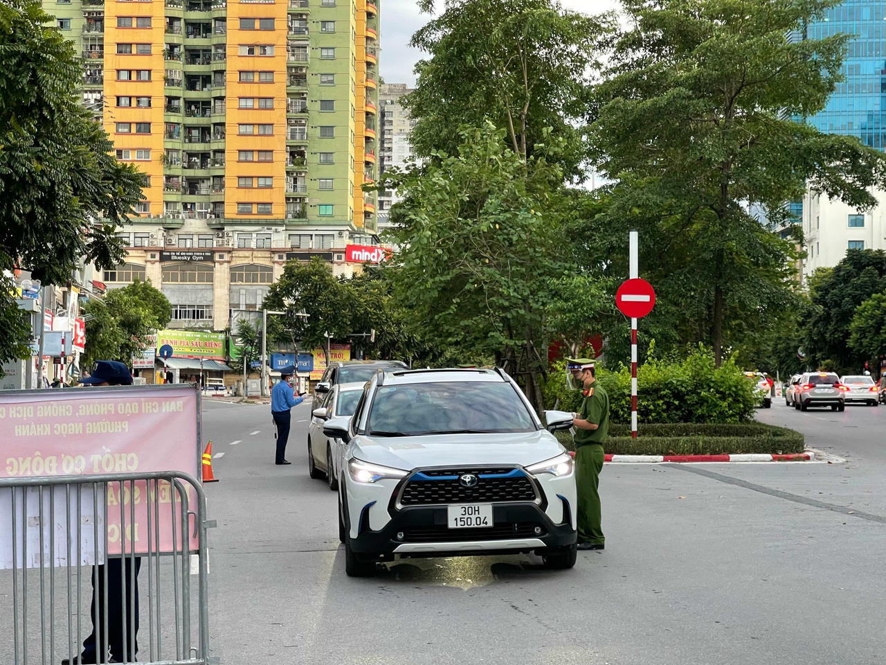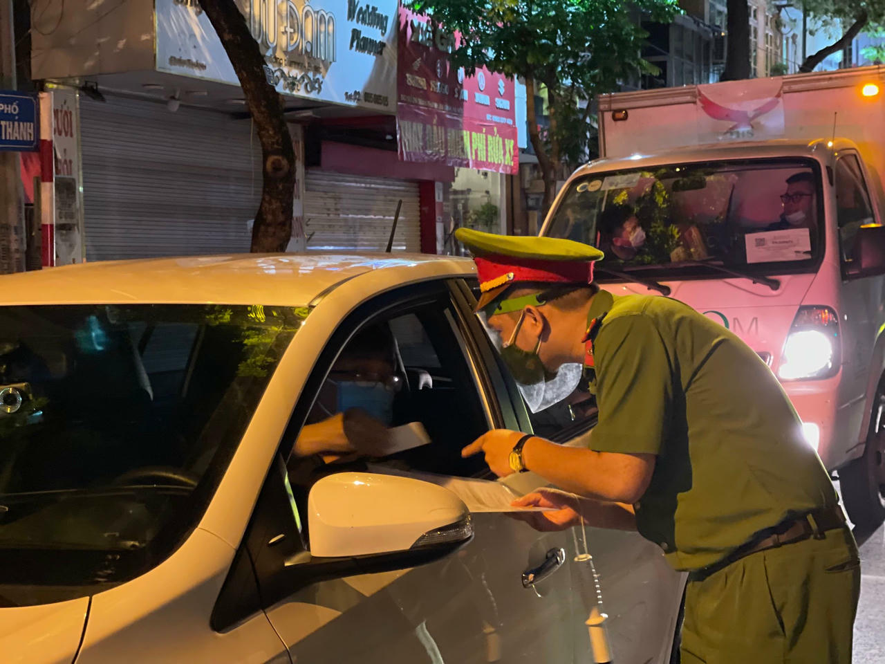 Tại chốt trên đường Kim Mã, lực lượng chức năng thông tin, mỗi xe đi qua đều phải xuất trình giấy đi đường theo mẫu chung của UBND TP Hà Nội.
