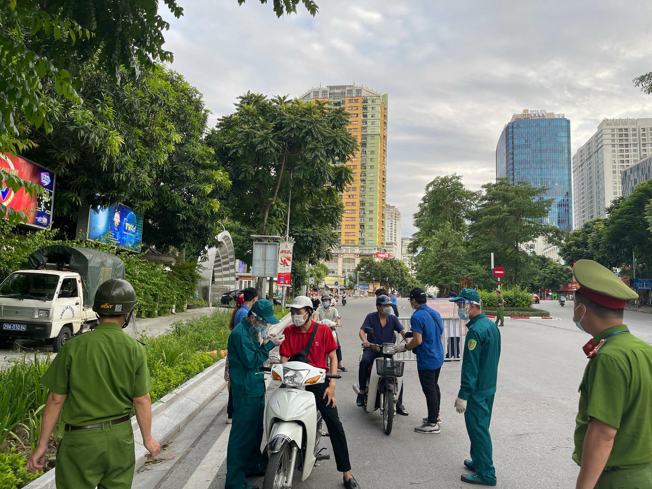 Ghi nhận tại nhiều chốt trên các tuyến đường Kim Mã, Nguyễn Chí Thanh, Quán Thánh… dù chủ nhật nhưng nhiều người vẫn tham gia giao thông và lực lượng chức năng "căng mình" thường trực tại các chốt từ 6h đến 22h.