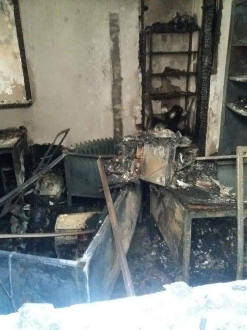 Hiện trường vụ phóng hỏa Trung tâm đăng kiểm ở Zubin Potok. Ảnh: Twitter |