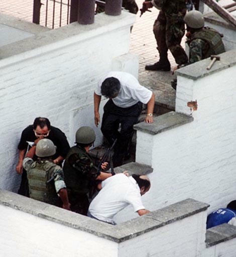 Chính quyền Pêru không ngừng gây áp lực quân sự với bọn bắt cóc đang bị bao vây. Hàng trăm xe cảnh sát và xe quân sự chống mìn và các loại xe quân sự diễu hành thị uy quanh khu vực toà đại sứ. Máy bay trực thăng không ngừng quần đảo trên khu vực sứ quán, không gian luôn vang rền tiếng động cơ.