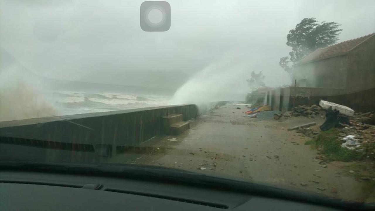 Đoạn đê bao chắn tại xã Cẩm Nhượng có nguy cơ vỡ. Trưa 15/9, nước đã tràn qua đê. Cán bộ nhân dân xã đang tập trung tại các điểm xung yếu, sẵn sàng ứng cứu, nhưng do gió mạnh, triều cường cao, nước ngập sâu nên di chuyển khó khăn.