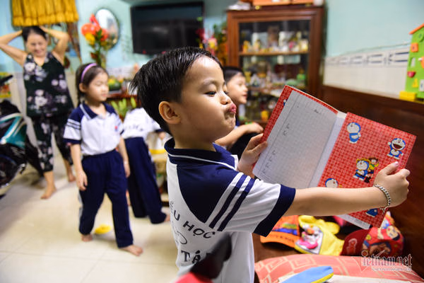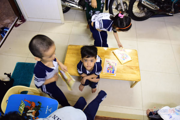 Dù nhà gần trường nhưng mẹ bé cũng phải vất vả đi 2 chuyến xe mới chở hết được 5 bé. Chị Anh Thư, mẹ của 5 đứa trẻ phải nghỉ công việc bán hàng, nhờ bà nội, bà ngoại phụ giúp chăm sóc các bé. Chồng chị lo kiếm kinh tế để nuổi đàn con thơ. Những ngày không đi gửi trẻ, cả 5 đứa đều ở nhà, chị sẽ “đảm đương” 3 cậu con trai, bà nội “phụ trách” 2 bé gái. Quanh đi, quẩn lại hết một ngày.