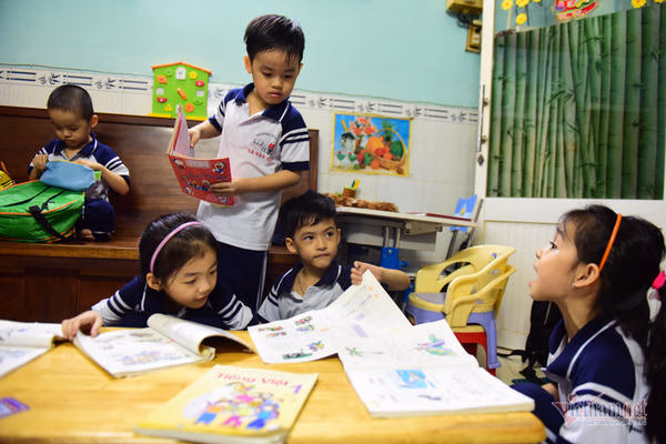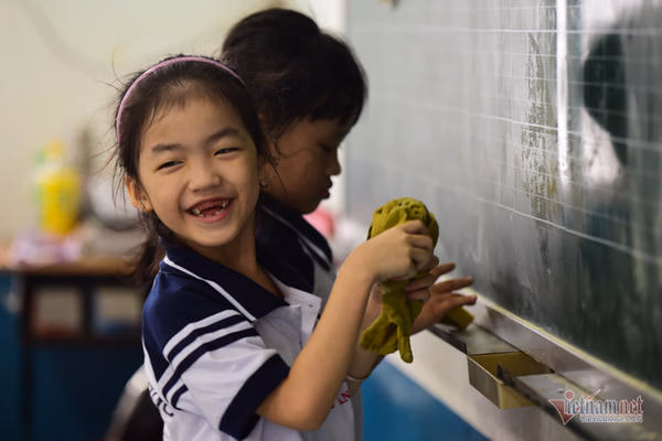 Sau khi bốc thăm phân lớp, 5 đứa trẻ được chia thành 2 lớp, 2 bé gái học lớp 1.2 và 3 bé trai học lớp 1.3. Cô Phấn cũng cho biết thêm, 3 anh em trai đều đã quen với môi trường học tập mới. Đôi khi có chút chậm, nhưng các con đều ngoan ngoãn trong giờ học