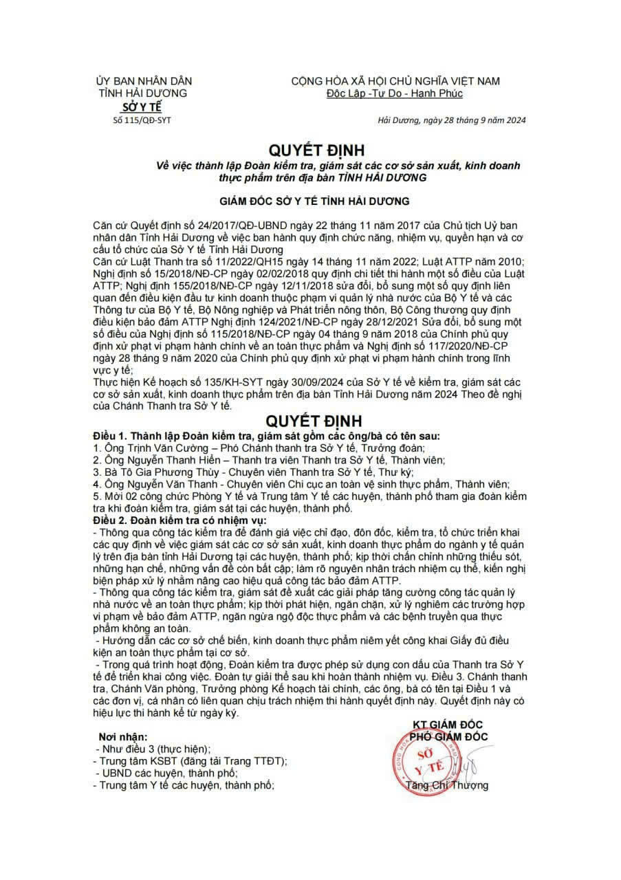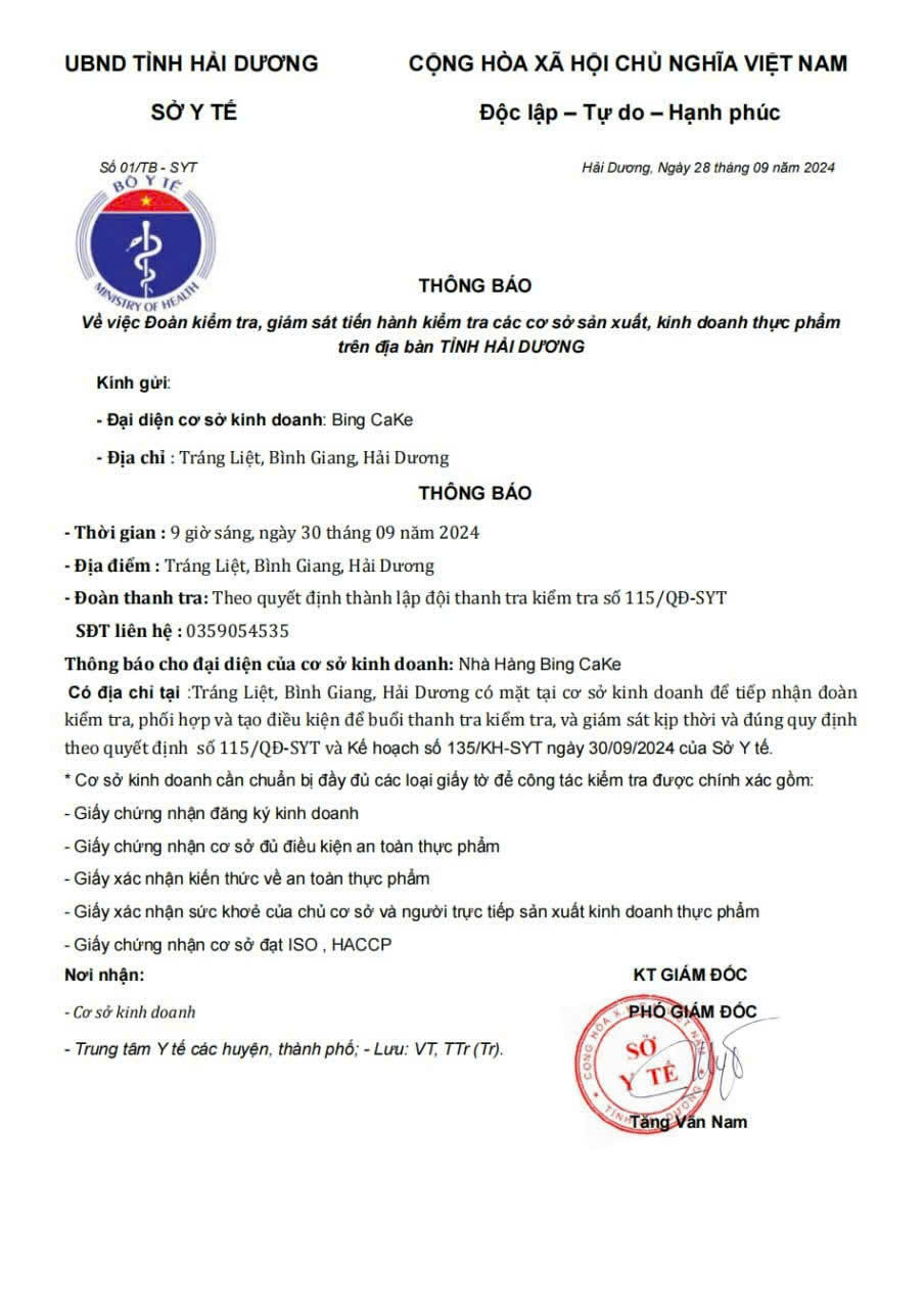 Cảnh báo giả mạo công văn Sở Y tế Hải Dương lừa đảo cơ sở kinh doanh thực phẩm