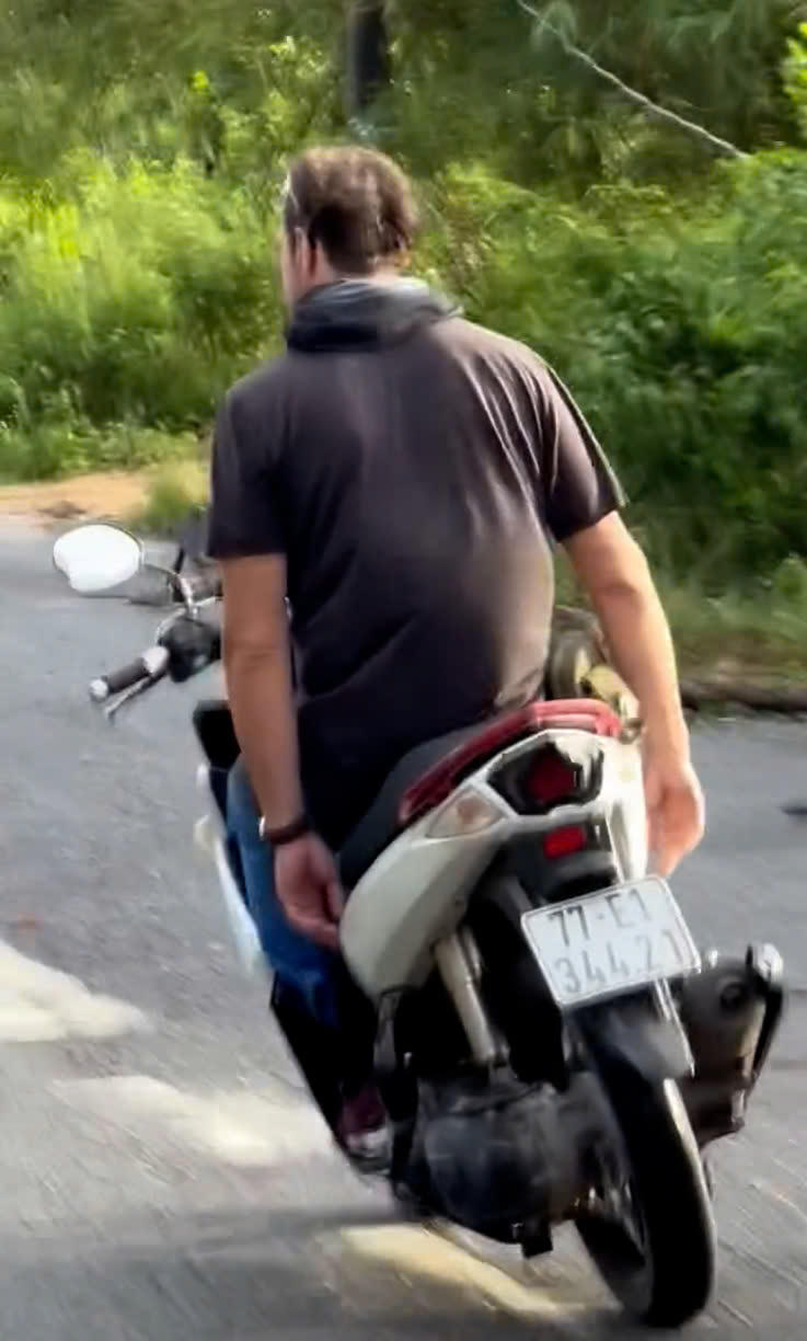 Khoảng 17h ngày 4/5, tại tuyến đường ĐT.973 thuộc ấp Xóm Mới, xã Bãi Thơm, TP Phú Quốc, một nam du khách người nước ngoài điều khiển mô tô không đội mũ bảo hiểm và buông cả hai tay khi lái xe, gây nguy hiểm cho người tham gia giao thông.