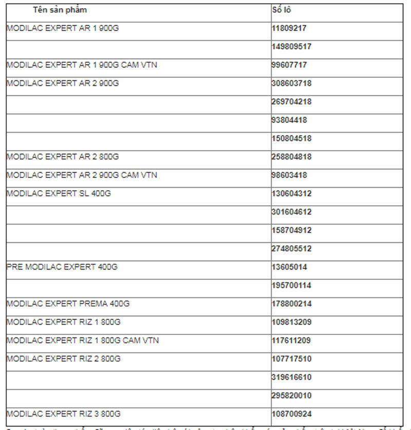 "Cục An toàn thực phẩm khuyến cáo người tiêu dùng tuyệt đối không sử dụng các sản phẩm có tên và số lô bị cảnh báo nêu trên và đề nghị thông báo ngay với cơ quan chức năng tại địa phương khi phát hiện sản phẩm cảnh báo trên thị trường", cơ quan chức năng nêu rõ và cho biết thêm sẽ cập nhật thông tin chi tiếtvà hình ảnh sản phẩm trên website của Cục này.