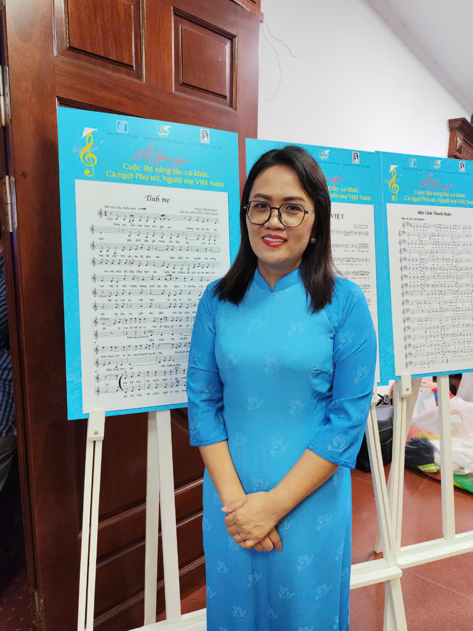 Nguyễn Thị Hằng - tác giả phần lời của ca khúc “Tình mẹ" đạt Giải Nhất hạng mục ca khúc ca ngợi mẹ đỡ đầu. Ảnh: X.Hoa |