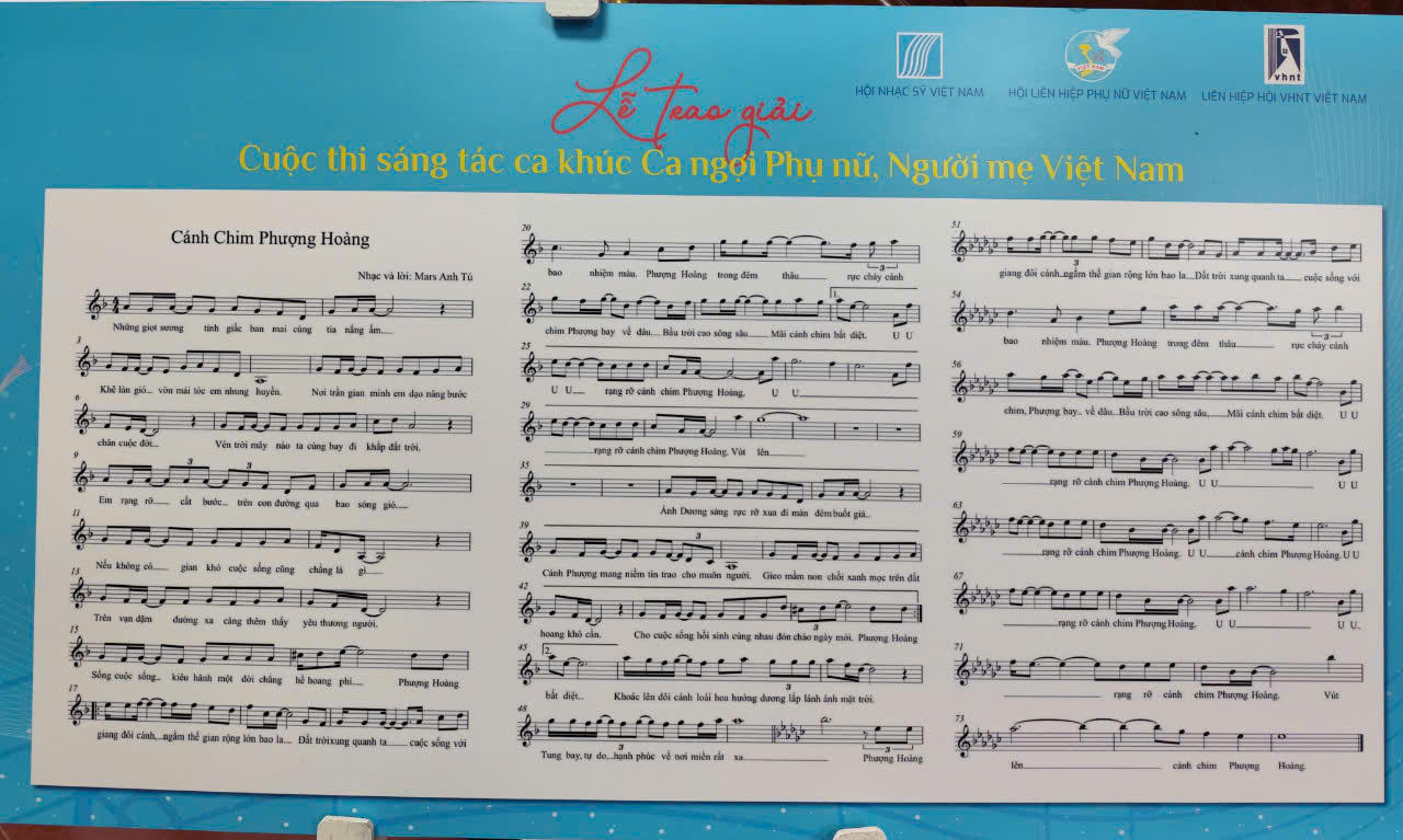 Ca khúc “Cánh chim phượng hoàng”, nhạc và lời Nguyễn Anh Tú (Tú Dưa), lời rap Bùi Xuân Trường là ca khúc đạt Giải Nhất ca ngợi hạng mục phụ nữ, người mẹ Việt Nam. Ca khúc “Cánh chim phượng hoàng” được đánh giá là một sản phẩm âm nhạc được thực hiện công phu đậm chất sử thi nhưng không hàn lâm mà hướng tới giới trẻ và công chúng rộng rãi, với phần lời rất độc đáo như: “Từ căn bếp nhỏ đến ngoài xã hội/Tất cả lĩnh vực trong xã hội/Độc lập tự chủ làm đẹp cho bản thân mình và làm đẹp cho đời/Vút baу lên cánh chim hồi sinh từ đống tro tàn/Không tuуệt vọng nào huỷ diệt được lòng kiêu hãnh phượng hoàng/Người phụ nữ Việt Nam…”.