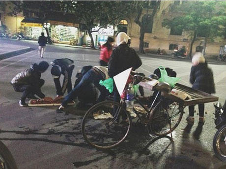 Bức ảnh người dân Hà Nội giúp chị bán hàng rong nhặt những quả dâu tây bị đổ trên đường sau một vụ va chạm xe được cư dân mạng lan truyền từ đêm ngày 23/12.