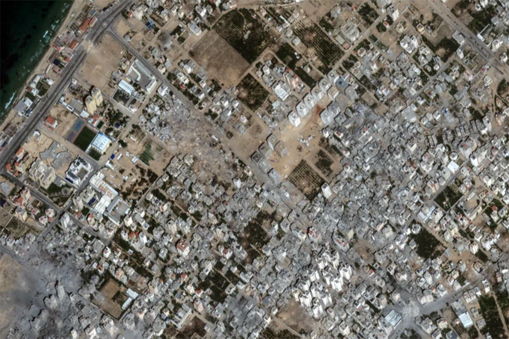Những bức ảnh vệ tinh khu vực của Gaza được chụp vào ngày 10/5 và 21/10, trước và sau xung đột Israel-Hamas, cho thấy nhiều tòa nhà đã biến thành đống đổ nát hoặc bị hư hại nặng: