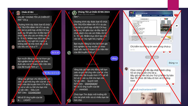 Công an TP Hà Nội cho biết, thời gian gần đây, lợi dụng nhu cầu tìm các khóa học, kỳ học, chương trình ngoại khóa cho con trong thời gian nghỉ hè năm 2023, trên mạng xã hội trong thời gian gần đây xuất hiện nhiều fanpage “Chiến sĩ Nhí”, “Chiến Sỹ Nhí Năm 2023”,… đăng tải các nội dung: Tuyển các chiến sỹ tý hon cho chương trình chúng tôi là chiến sỹ nhí – Đài Truyền hình Việt Nam VTV. Cần tuyển 500 mẫu nhí cho chương trình Chúng tôi là chiến sỹ nhí 2023 của Đài truyền hình Việt Nam VTV thực hiện. Chương trình sẽ được phát sóng vào 20h00 thứ 6 hàng tuần trên kênh VTV3 Đài Truyền hình Việt Nam.