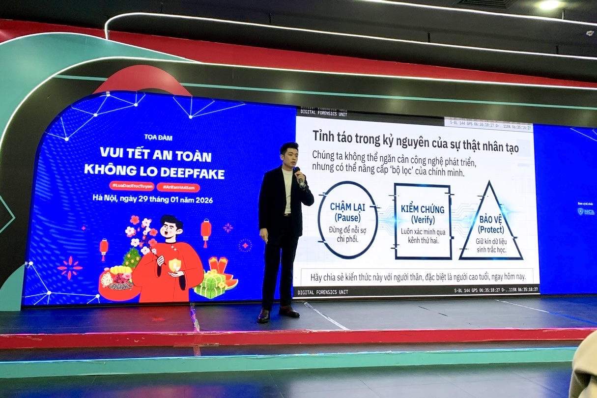 Khi deepfake (giả mạo khuôn mặt) ngày càng tinh vi, an toàn số trở thành mối quan tâm hàng đầu dịp Tết. Tọa đàm “Vui Tết an toàn - không lo Deepfake” góp phần cảnh báo thủ đoạn lừa đảo mới và nâng cao kỹ năng tự bảo vệ cho người dùng Internet.