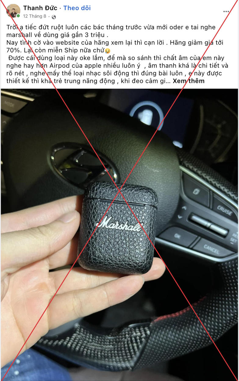 Chiếc tai nghe Marshall Minor 3 được chạy quảng cáo trên các fanpage Facebook giả mạo fanpage lớn ở Việt Nam như “Không Sợ Chó”, “tin tức 24h” hay các fanpage với vỏ bọc Facebook cá nhân để chia sẻ Feedback sản phẩm.