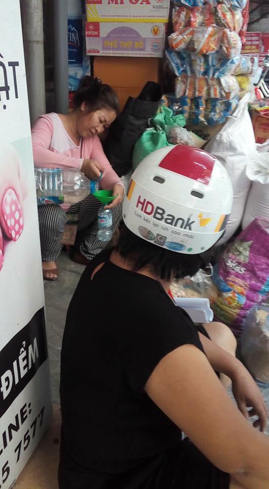 Không chỉ có vậy, hương nước bưởi là thành phần không thể thiếu nếu muốn những chiếc bánh trung thu có mùi thơm hấp dẫn. Thế nhưng cũng tại cửa hàng của người phụ nữ này, chúng tôi thấy chị đong cho khách nước hương bưởi được đựng trong can nước khoáng nhãn hiệu Lavie loại 5 lít, sang chai Lavie bé loại 500ml. Nếu không phải bà chủ quán nói, trong can Lavie 5 lít kia là nước hương bưởi, thì chúng tôi cũng như khách hàng khó lòng có thể biết được, bởi bên ngoài vỏ can vẫn là nhãn mác của nhãn hiệu nước uống Lavie.