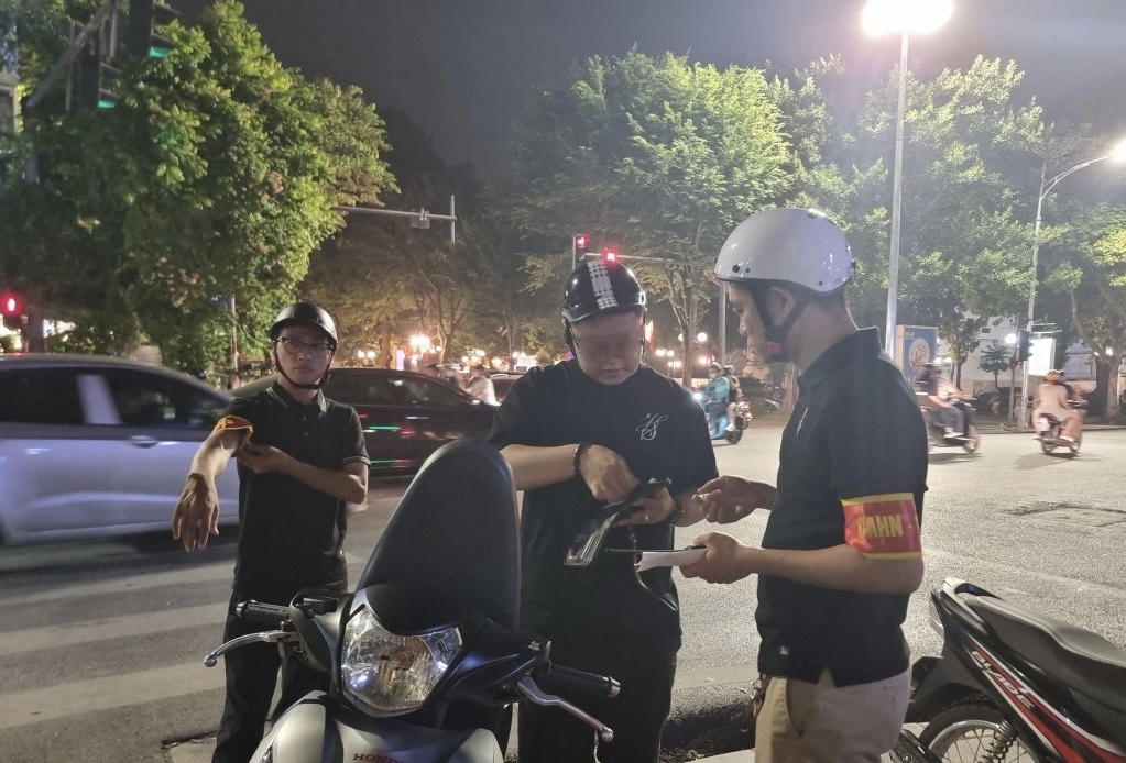 Đơn cử như khoảng 20h50 cùng ngày, tổ công tác phát hiện nam thanh niên N.T.K.D (sinh năm 2001, quê Nam Định) điều khiển xe máy BKS độ pô và có hành vi rú ga gây ra tiếng động lớn nên đã dừng kiểm tra. Qua quá trình kiểm tra D. đầy đủ giấy tờ xe nên được tổ công tác bàn giao người và phương tiện về Công an phường Tràng Tiền tiếp tục xác minh, xử lý.
