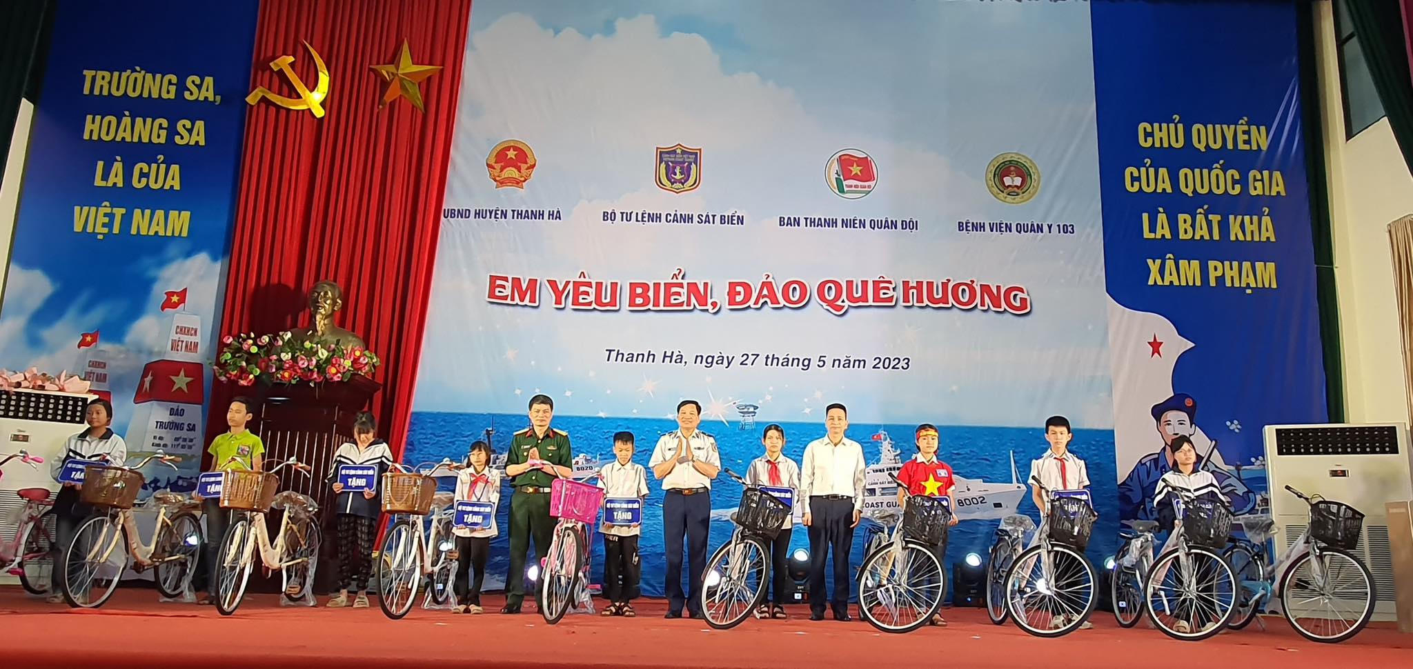 (PLVN) - Sáng ngày 27/5, tại Nhà văn hoá trung tâm huyện Thanh Hà (tỉnh Hải Dương), Bộ Tư lệnh Cảnh sát biển Việt Nam đã phối hợp với UBND huyện Thanh Hà (tỉnh Hải Dương), Ban Thanh niên Quân đội, Bệnh viện Quân y 103 tổ chức Cuộc thi “Em yêu biển, đảo quê hương” và các hoạt động an sinh xã hội tại địa phương.