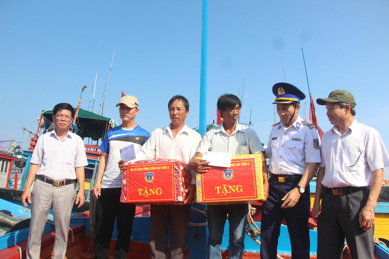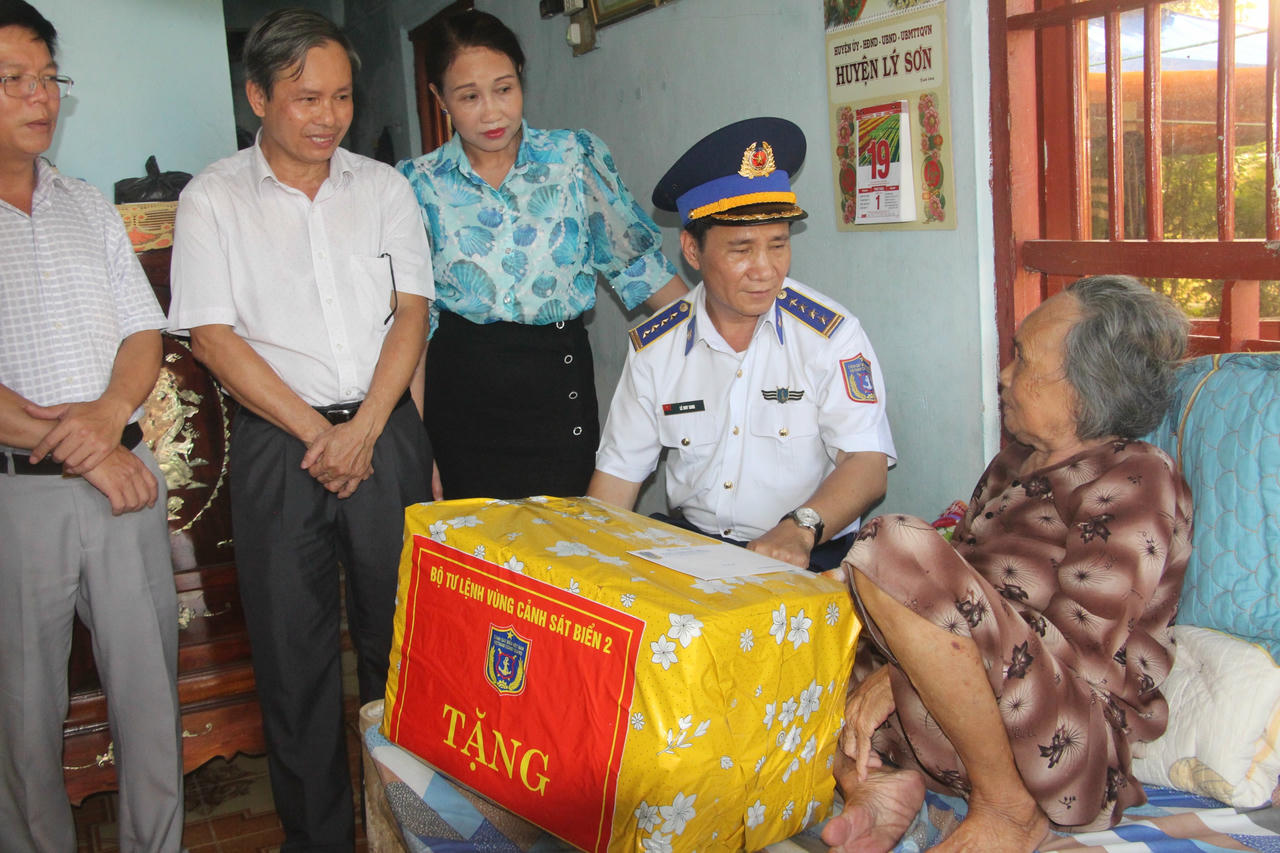 Đoàn công tác Bộ tư lệnh Vùng Cảnh sát biển 2 cũng đã đến thăm, tặng quà cho các gia đình chính sách gồm bà Bùi Thị Miết và ông Trần Văn Sơn, ở huyện đảo Lý Sơn.