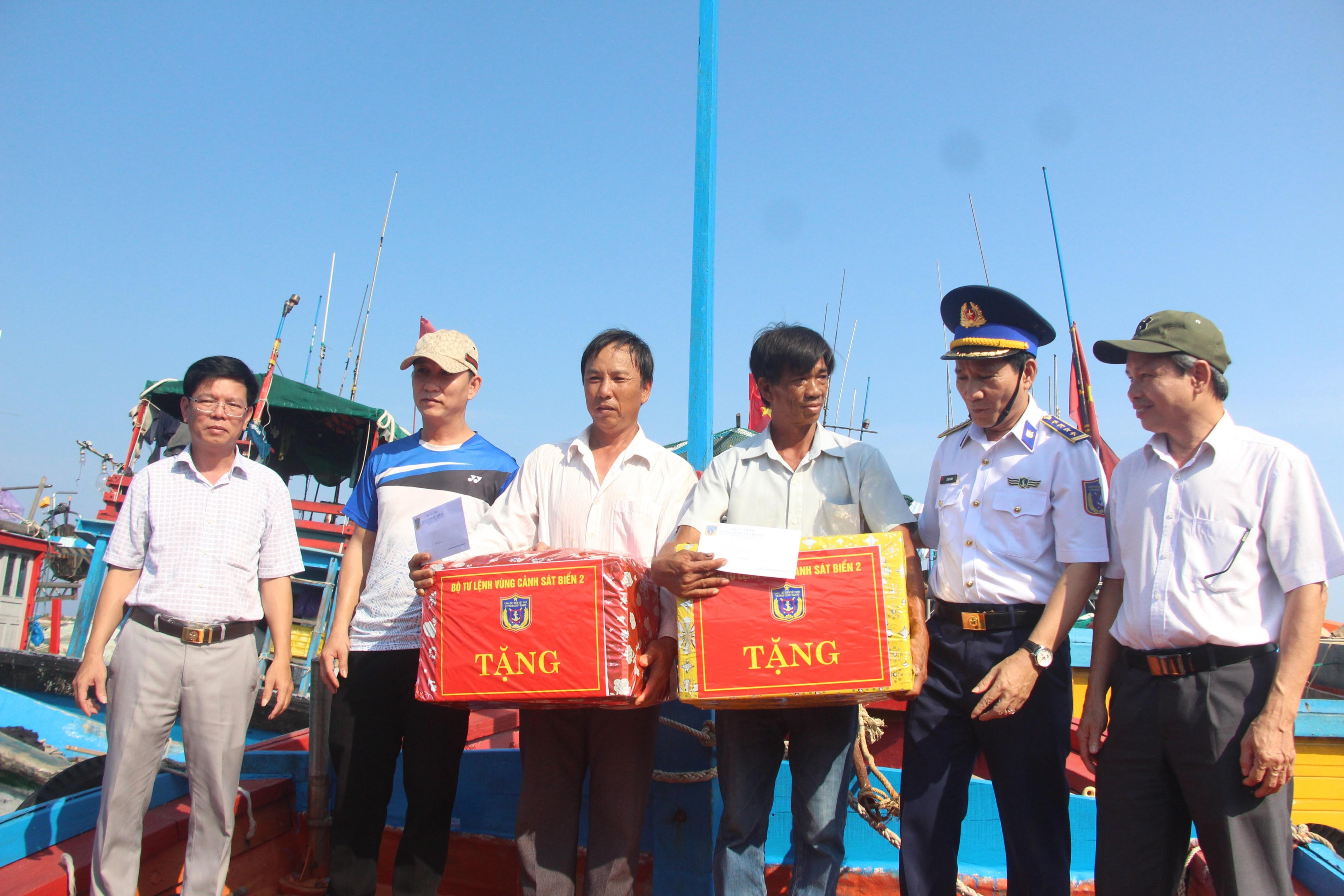 Tặng quà cho ngư dân. |
