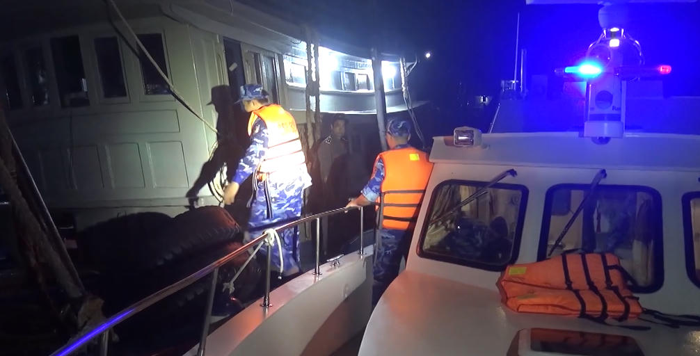 Lực lượng Cảnh sát biển phát hiện, kiểm tra con tàu có dấu hiệu vi phạm trong đêm. |