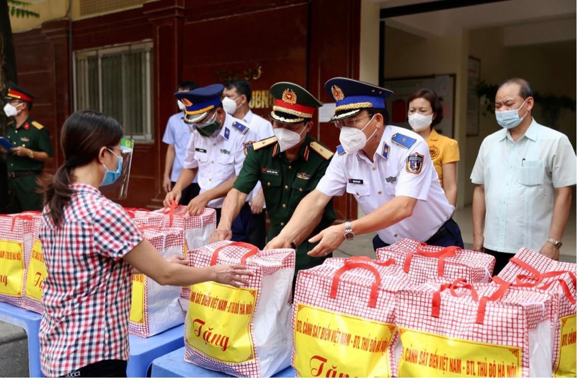 Cảnh sát biển tặng hàng trăm suất quà hỗ trợ các hộ khó khăn do dịch COVID-19 ở quận Thanh Xuân