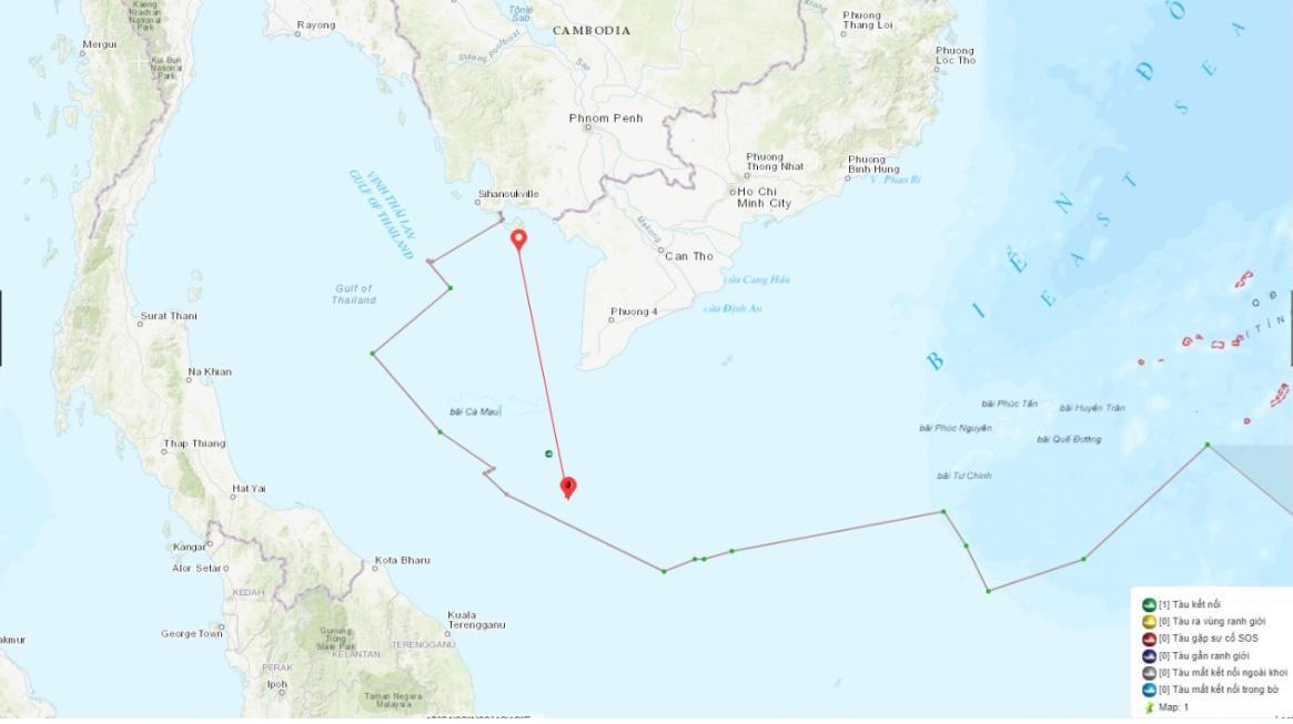 Vị trí bắt giữ tàu cá vi phạm. |