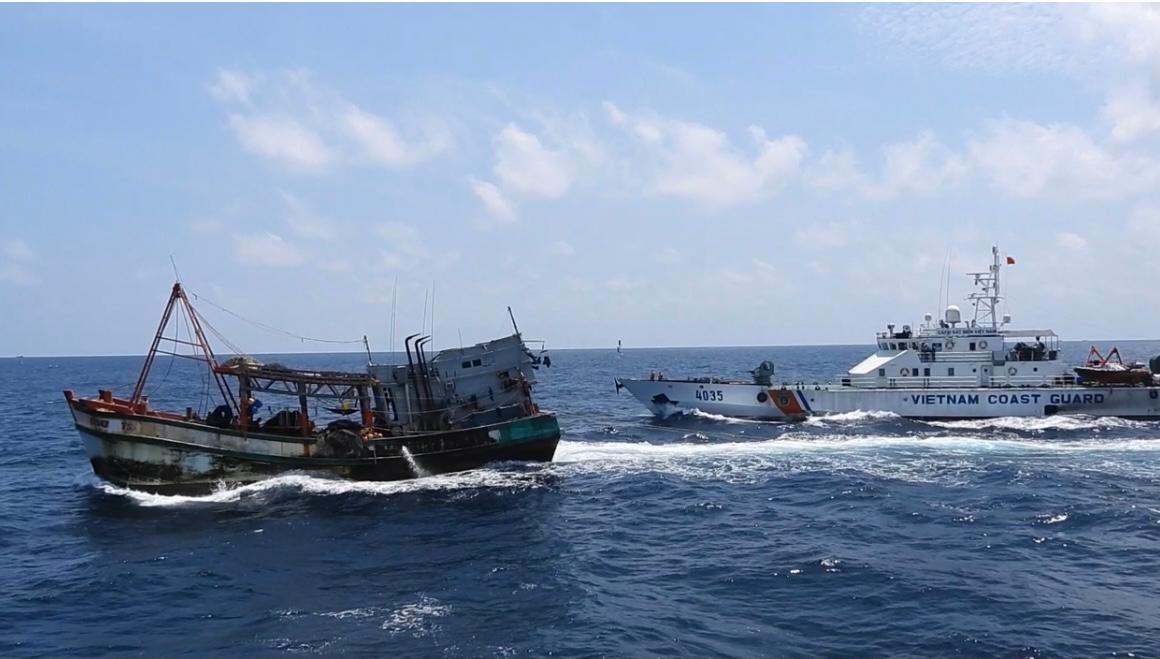 Cảnh sát biển truy đuổi bắt giữ tàu cá vi phạm IUU trên vùng biển Tây Nam