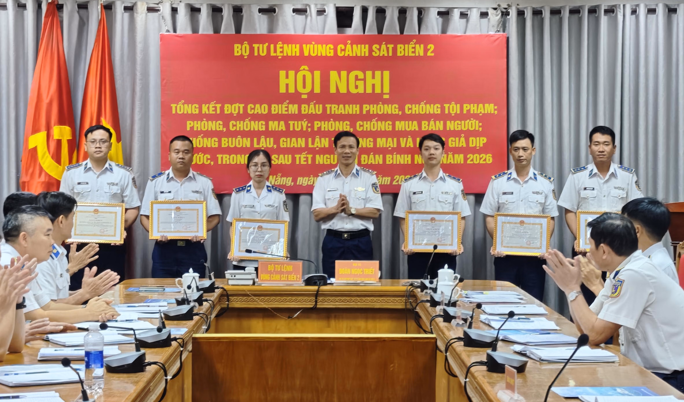 Dịp này, Bộ Tư lệnh Vùng Cảnh sát biển 2 đã khen thưởng 2 tập thể và 5 cá nhân có thành tích xuất sắc trong thực hiện đợt cao điểm đấu tranh phòng, chống tội phạm; phòng, chống ma túy; phòng, chống mua bán người; chống buôn lậu, gian lận thương mại và hàng giả dịp trước, trong và sau Tết Nguyên đán Bính Ngọ năm 2026.