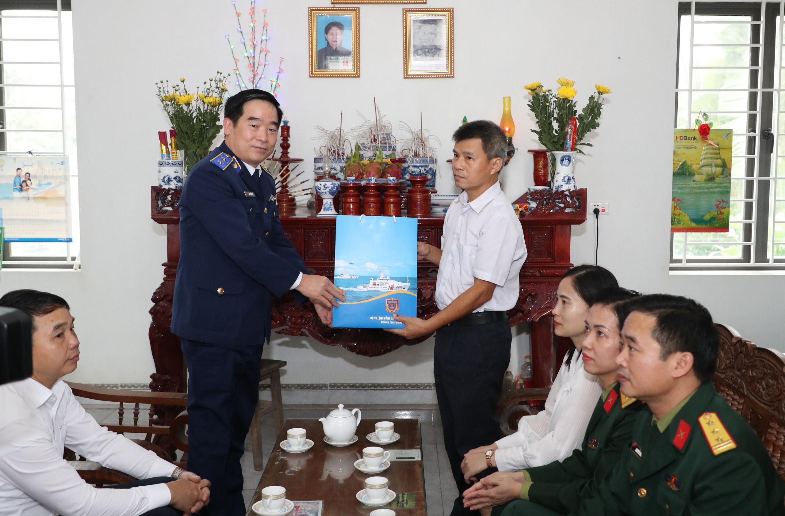 Trung tướng Bùi Quốc Oai - Chính ủy Cảnh sát biển thăm, tặng quà gia đình Liệt sĩ Nguyễn Viết Xuân ở thôn Thương, xã Ngũ KIên. |