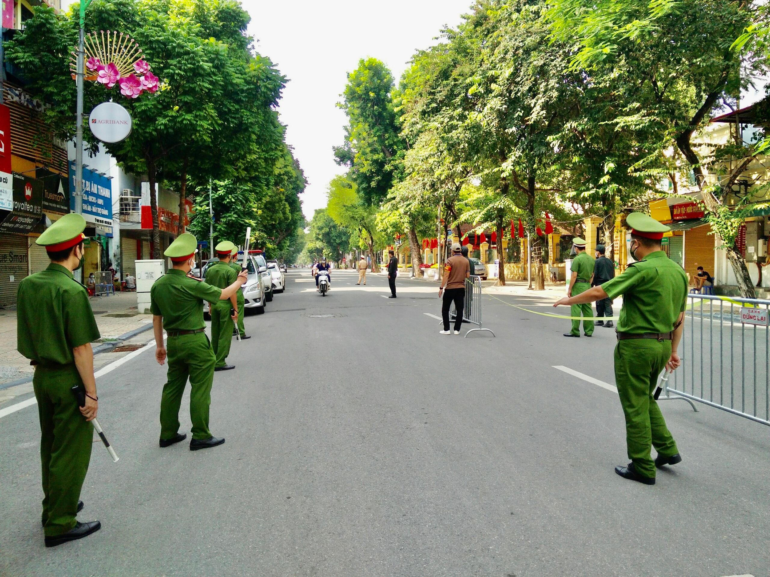 Đại uý Nguyễn Mạnh Lực, Tổ trưởng Tổ kiểm tra Cơ động mạnh (Y3/141) Công an TP Hà Nội cho biết: "Sáng nay chúng tôi duy trì công tác chốt chặn phòng dịch, kiểm tra giấy đi đường và tuyên truyền nhắc nhở người dân không ra ngoài nếu không thực sự cần thiết. 12 tổ cơ động mạnh vẫn hoạt động. Hiện chưa có quy định mới về người từ vùng xanh sang vùng đỏ".