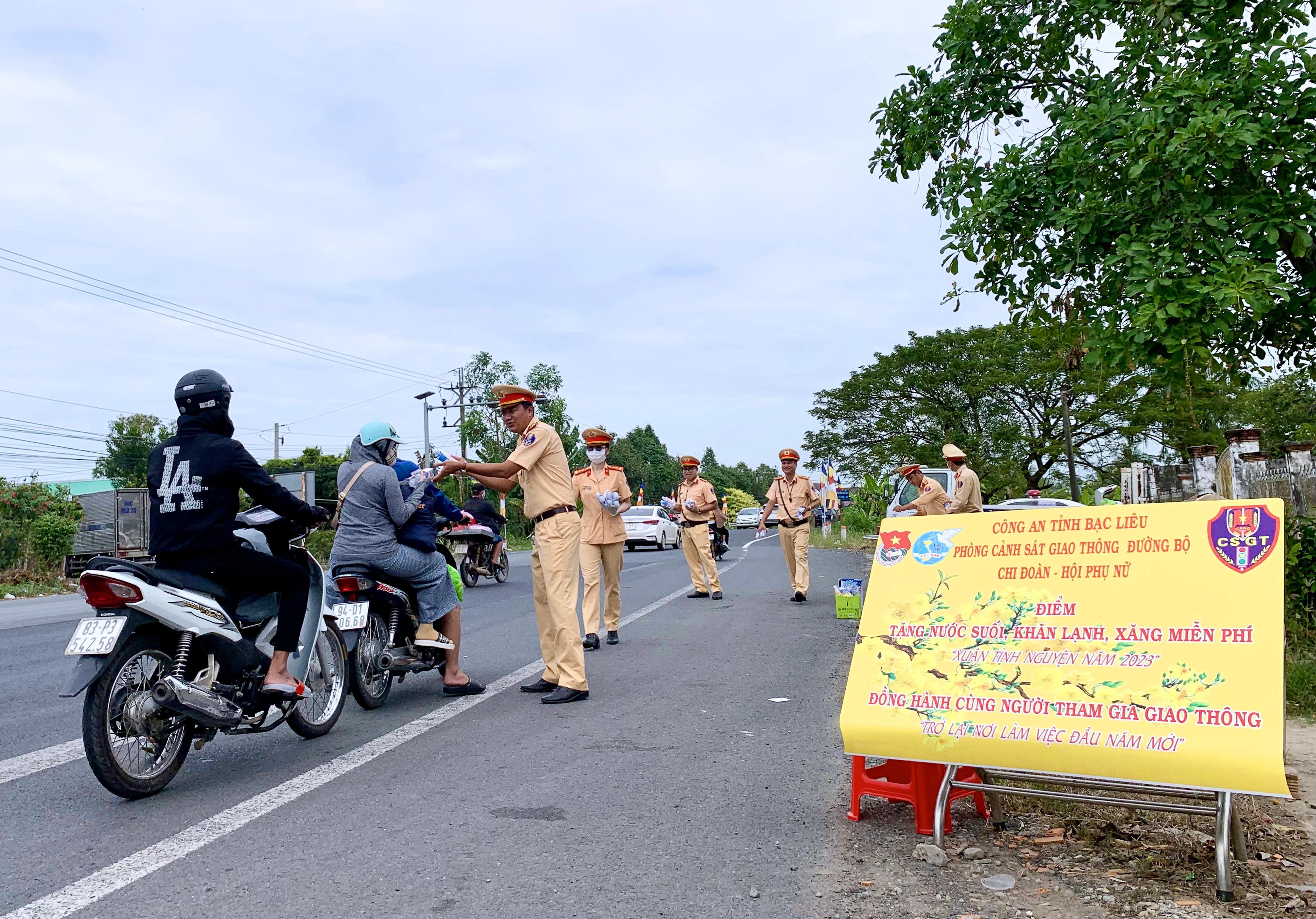 Ngoài việc phát tặng nước suối, khăn lạnh, xăng miễn phí, lực lượng Cảnh sát giao thông đường bộ Công an tỉnh Bạc Liêu còn nhắc nhở người dân điều khiển xe máy nghiêm chỉnh chấp hành các quy định về giao thông đường bộ; đặc biệt lưu ý tuyệt đối không điều khiển phương tiện khi đã uống rượu, bia.