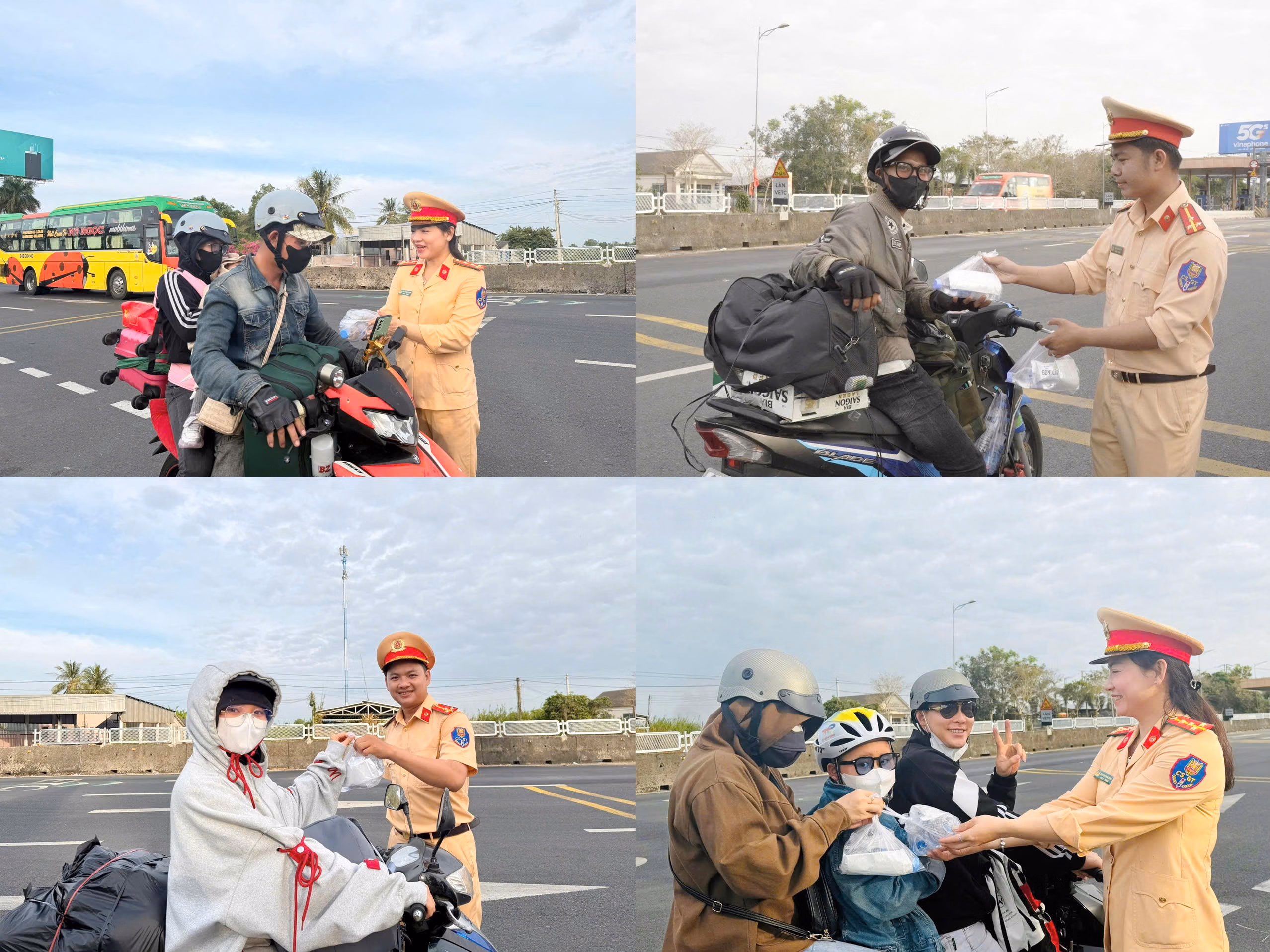 Anh Nguyễn Văn Đô, công nhân đang làm việc tại TP. Hồ Chí Minh, trên đường về huyện Hòa Bình (tỉnh Cà Mau) đón Tết cùng gia đình, xúc động chia sẻ: “Đi đường dài bằng xe máy rất mệt, nhất là những ngày nắng nóng. Được các anh, các chị Cảnh sát giao thông dừng lại hỏi thăm, phát nước uống, bánh ăn tạm khiến chúng tôi cảm thấy ấm lòng và có thêm động lực. Sự quan tâm này rất ý nghĩa, giúp chúng tôi yên tâm hơn trên hành trình về quê”.
