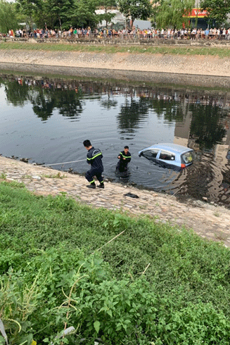 Thông tin ban đầu, hơn 17h30 ngày 12/6, một ô tô trôi xuống sông Tô Lịch tại khu vực đối diện số nhà 378 đường Kim Giang (quận Thanh Xuân).
