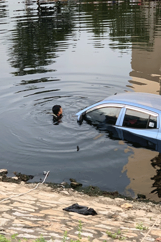 Cảnh sát Hà Nội dầm mình dưới sông Tô Lịch trục vớt ô tô giúp người dân