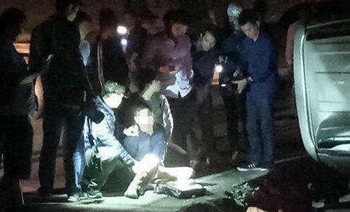 "Sau chừng 5km, xe công an chắn ngang đường, xe 7 chỗ phanh gấp và bị lật nghiêng. Tài xế và một số người vừa bỏ chạy vừa chống lại cảnh sát, như phim hành động", một nhân chứng cho hay.