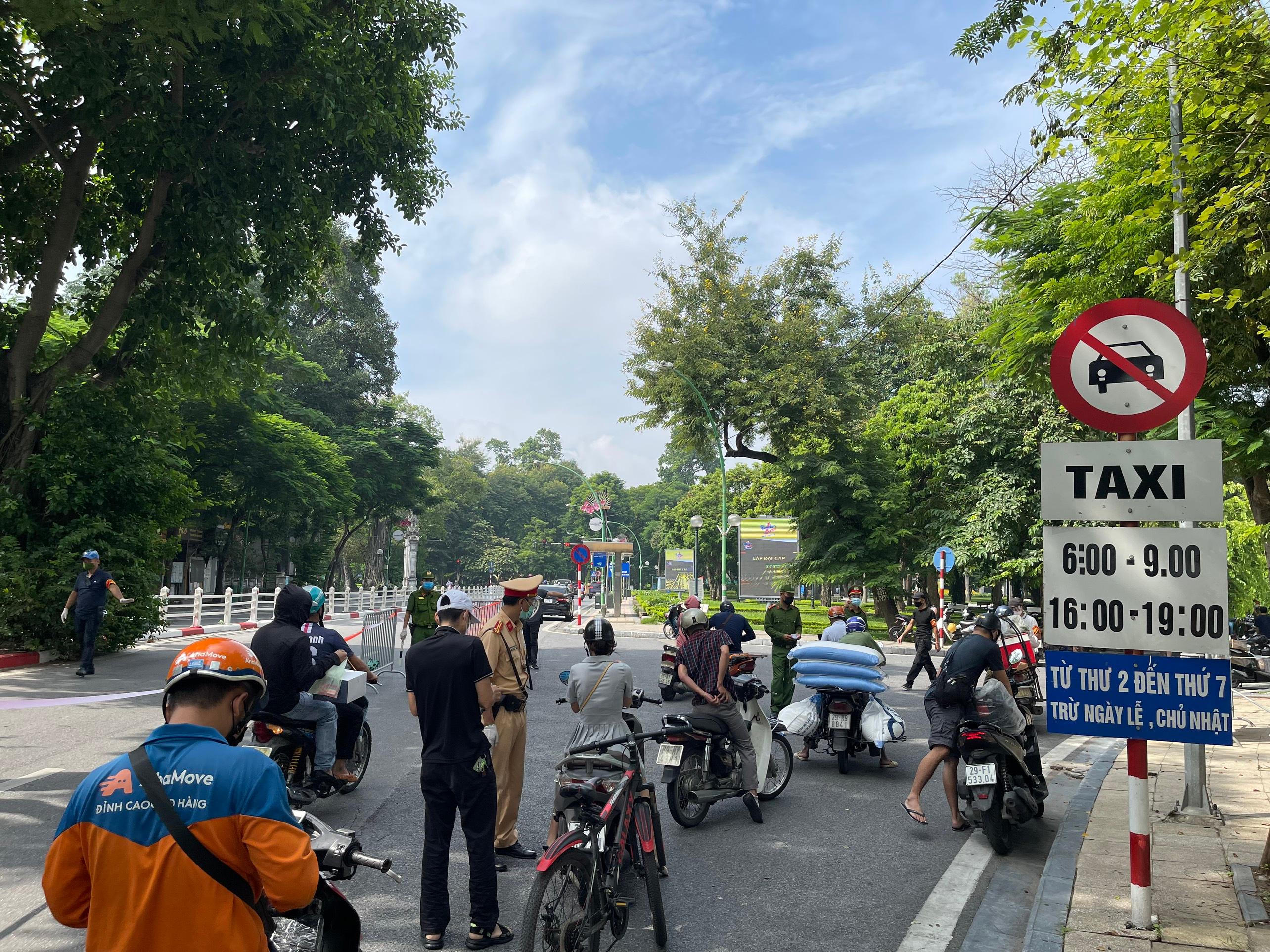 Đại úy Nguyễn Quang Khải, Tổ trưởng tổ 12 cho biết, nhiệm vụ chính của tổ công tác là kiểm soát 100% các phương tiện giao thông trên đường Thanh Niên theo hướng từ Yên Phụ xuống Thụy Khuê.