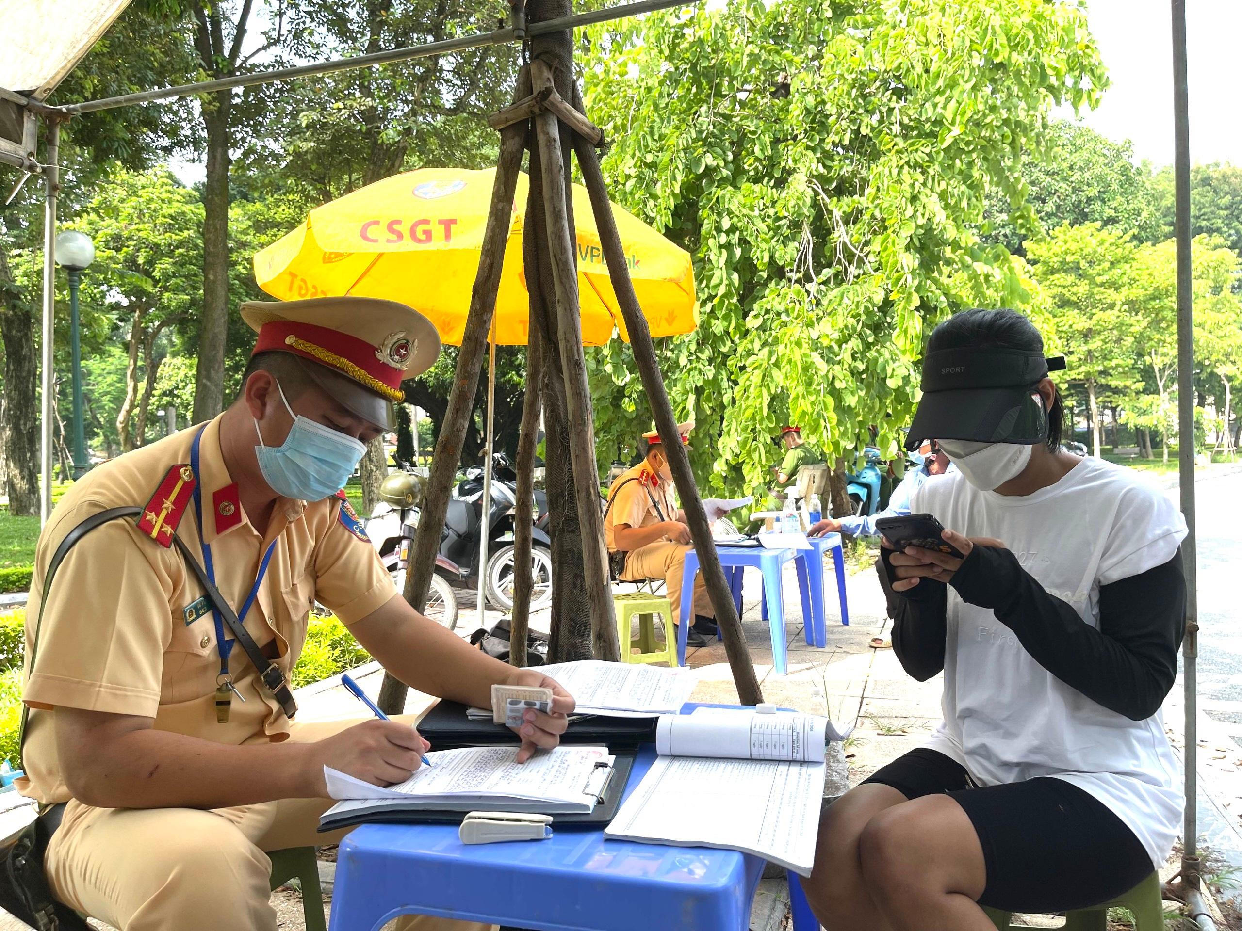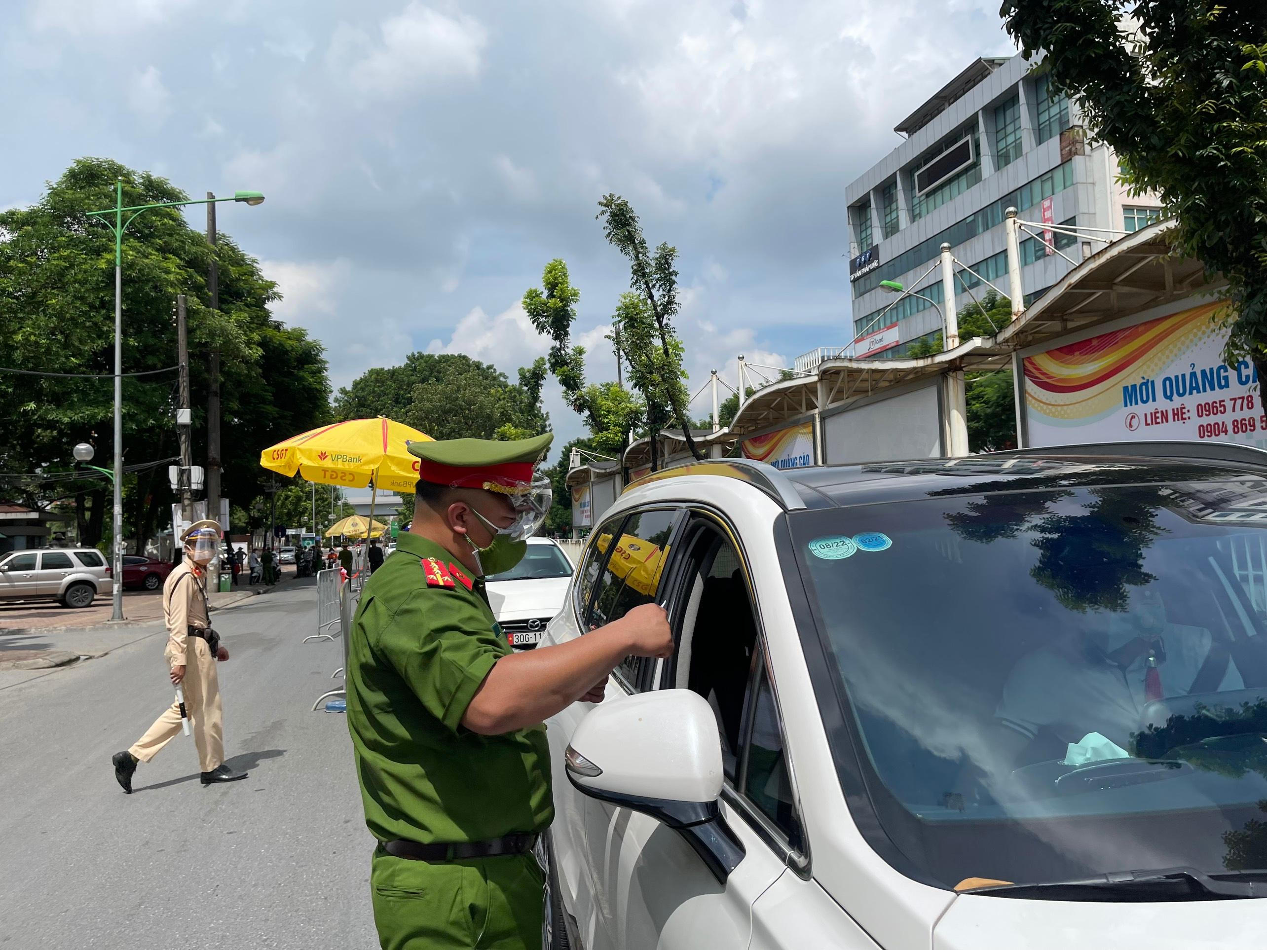 "Tổ công tác đã bố trí lực lượng theo phương án tách riêng biệt 2 luồng xe ô tô và xe máy, bố trí cán bộ chiến sĩ, mỗi người cách nhau khoảng 15m để kiểm tra phương tiện, giấy đi đường, chứng minh nhân dân, giấy tờ xe của người đi đường, đảm bảo đúng quy định trong công tác phòng chống dịch như Công an thành phố chỉ đạo", Đại úy Khải nói.