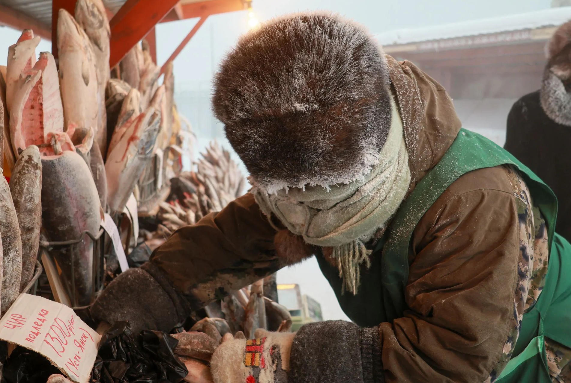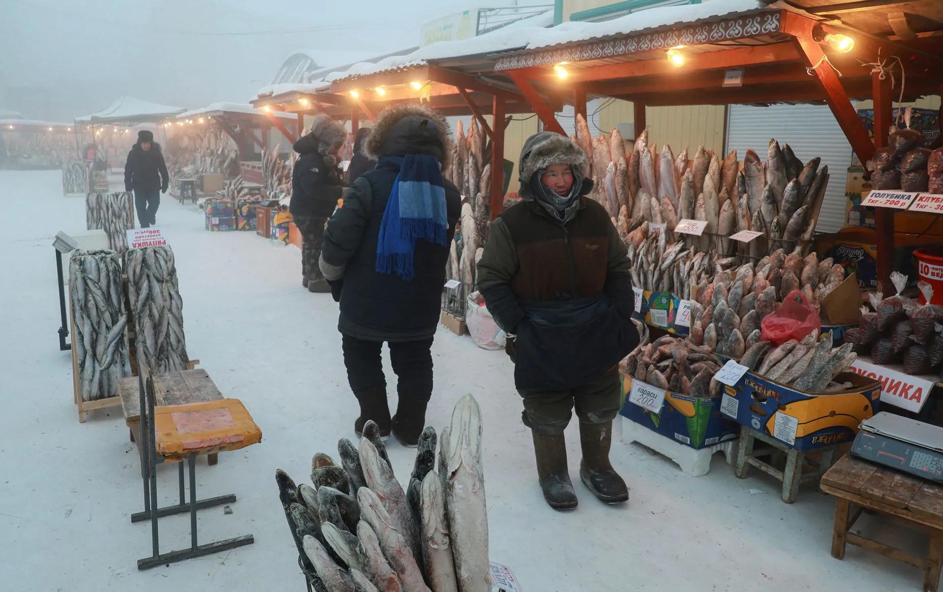 Tại chợ ở Yakutsk, cá đông lạnh sâu được đóng thành hàng chục hộp để bán, không cần tủ đông.