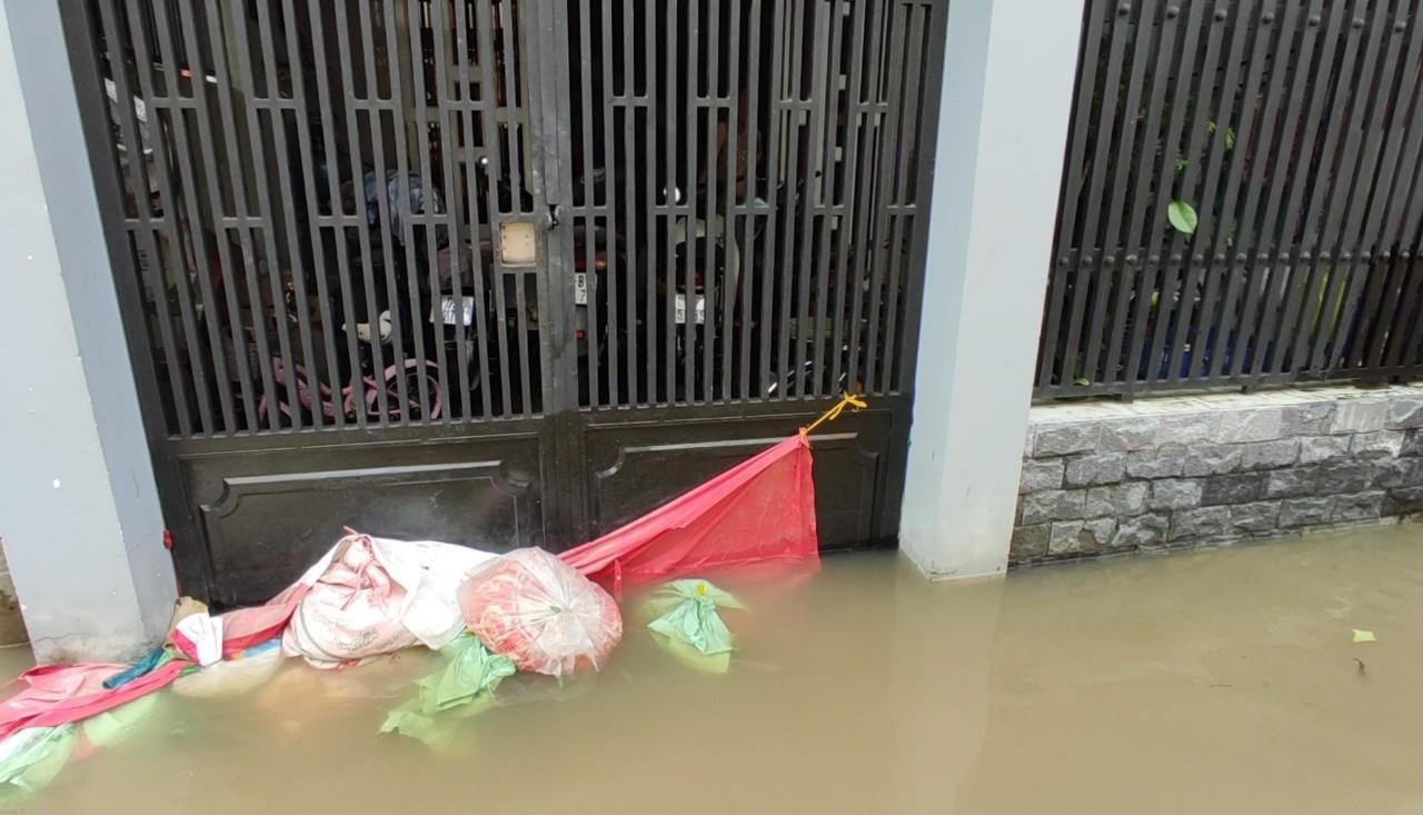 Bao cát, tường gạch hay thanh gỗ được tận dụng để hạn chế nước tràn vào nhà |