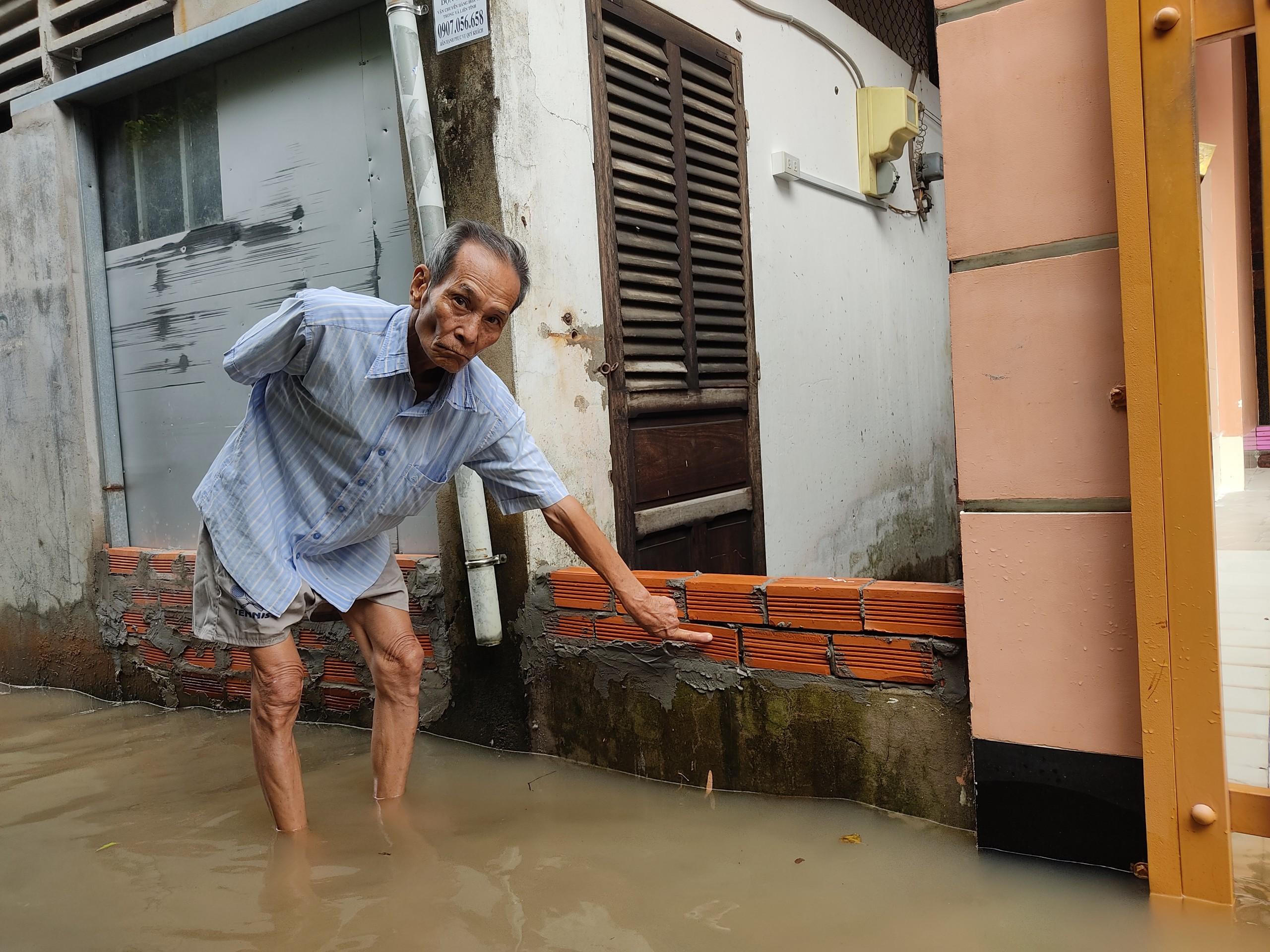 Nhà ở vùng thấp và trũng nhất cả con hẻm, ông Nguyễn Văn Bảy thấp thỏm cho biết, triều cường làm đảo lộn sinh hoạt gia đình ông cũng như nhiều hộ cùng hẻm. Nước không chỉ từ ngoài tràn vào mà còn từ ống cống sau nhà tràn lên, phải chờ nước rút mới có thể sử dụng được nhà vệ sinh.