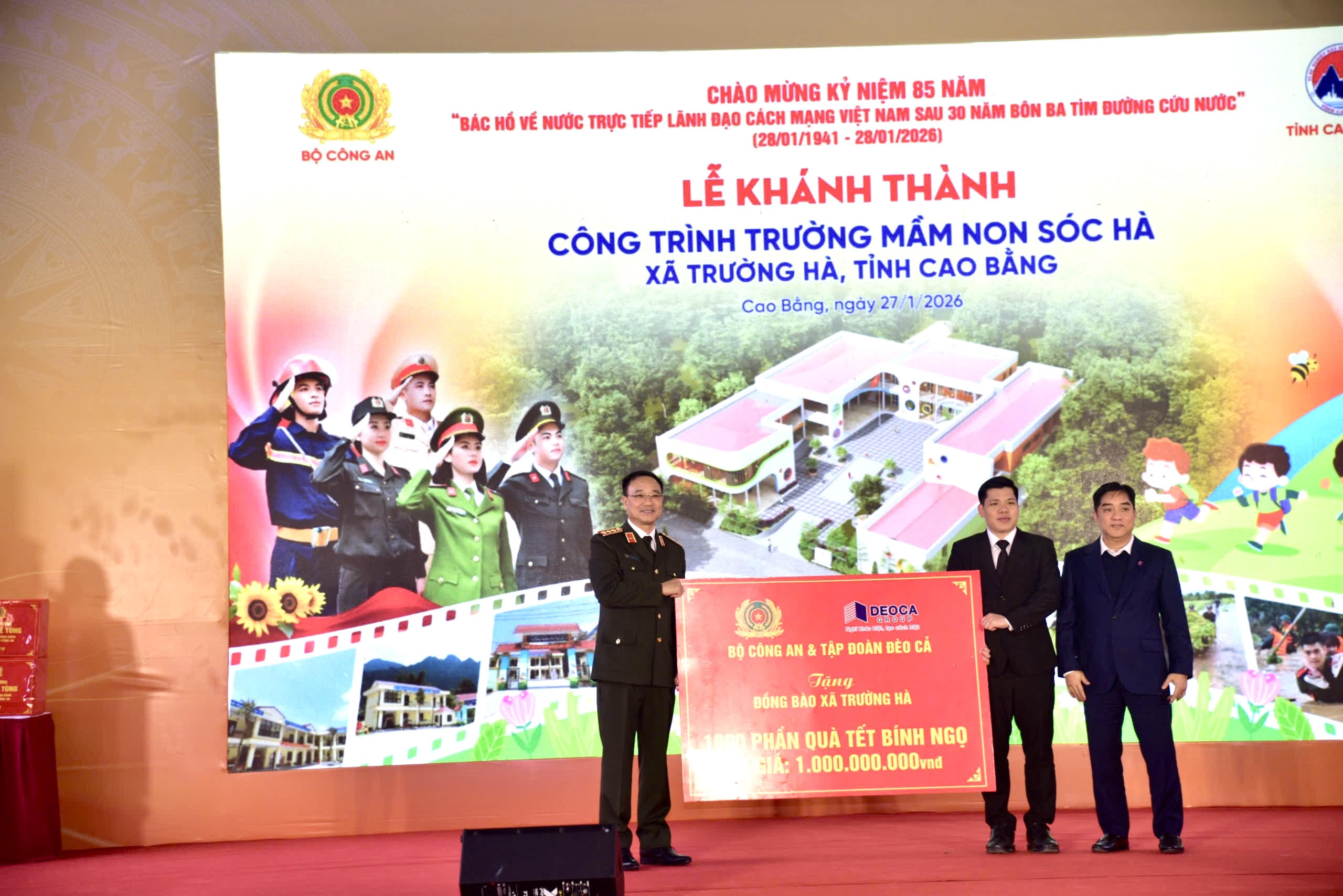 Ngày 27/01, UBND tỉnh Cao Bằng phối hợp cùng Bộ Công an và Tập đoàn Đèo Cả trang trọng tổ chức Lễ khánh thành Trường mầm non Sóc Hà tại xã Trường Hà. Đây là món quà ý nghĩa do Bộ Công an trao tặng, thiết thực chào mừng kỷ niệm 85 năm ngày Chủ tịch Hồ Chí Minh về nước, lãnh đạo cách mạng Việt Nam.